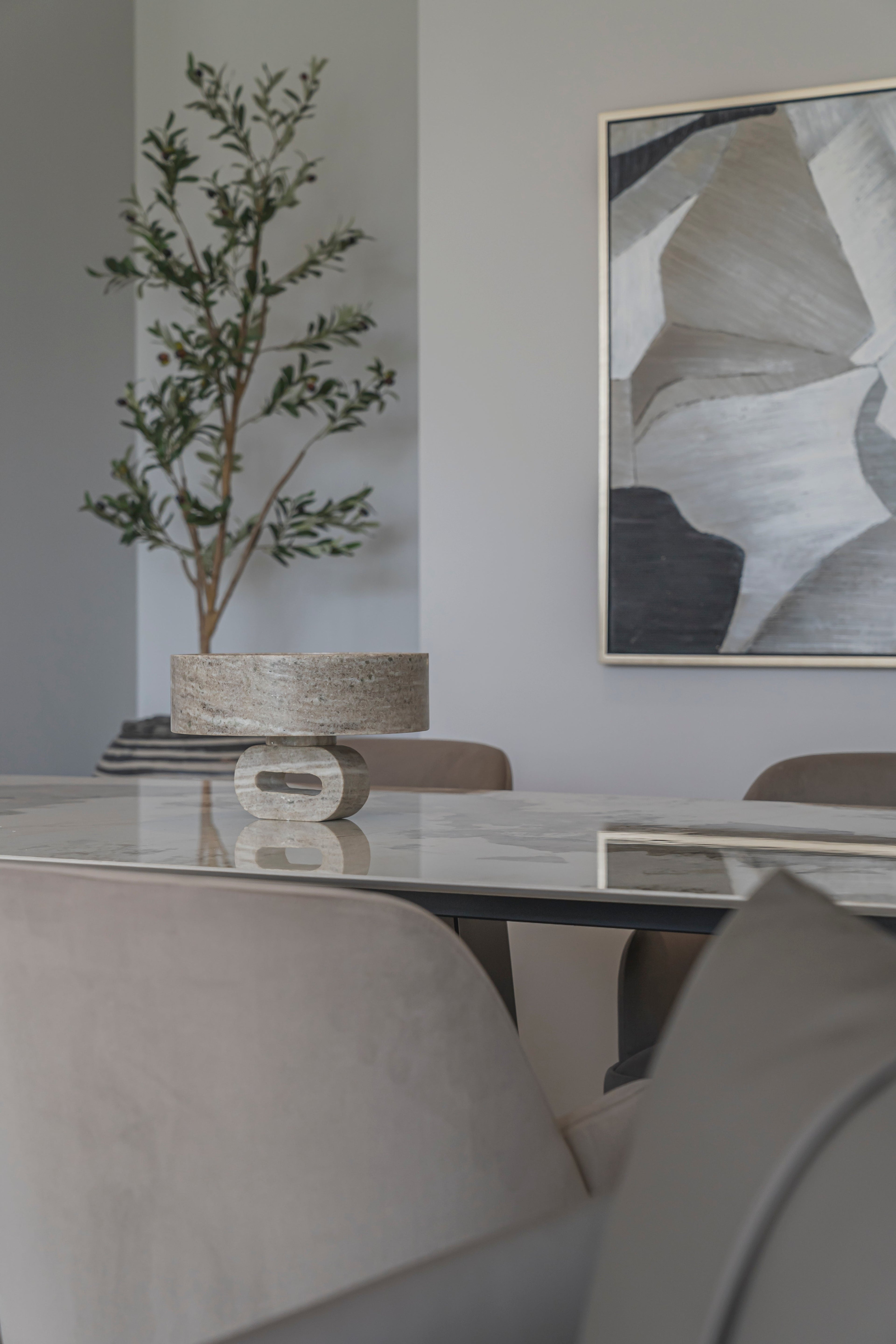 Añade un toque de elegancia natural a tu hogar con este bowl decorativo de mármol beige. Su diseño cilíndrico y su forma plana lo convierten en el centro ideal para exhibir objetos o realzar cualquier mesa o estantería.