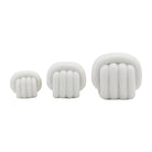 Cada nudo presenta un acabado mate con una textura granulada que captura la luz suavemente, ofreciendo una sensación visual y táctil agradable. Los tres tamaños variados permiten colocarlos en mesas, estanterías o rincones que busques destacar con estilo y sofisticación.