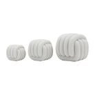 Agrega un toque de elegancia minimalista a tu espacio con este set de tres nudos decorativos en blanco puro. Su diseño esférico y trenzado crea una presencia artística sutil, perfecta para realzar cualquier ambiente interior.