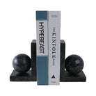 Mantén tus libros organizados con elegancia y dale un toque sofisticado a tu espacio con esta cuña soporte para libros en tonos gris oscuro y negro. Su diseño geométrico combina dos bloques rectangulares estables con una esfera decorativa en la base, creando un objeto funcional y decorativo para estanterías o mesas.