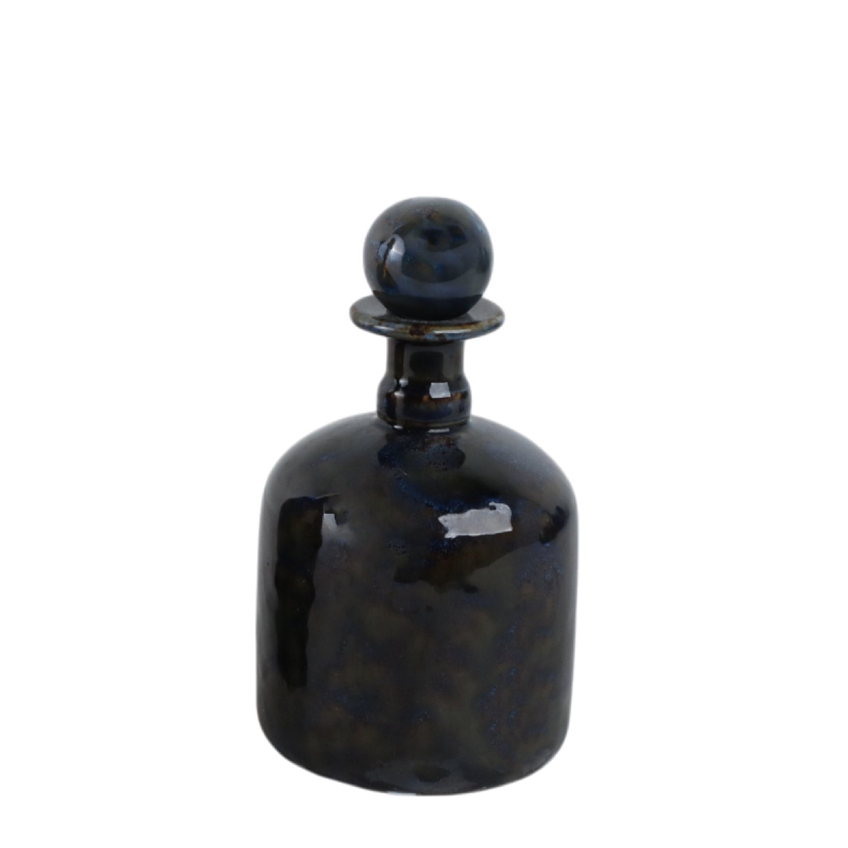 Agrega un toque de elegancia y serenidad a tus espacios con esta botella decorativa pequeña en un profundo azul oscuro brillante. Su diseño ovalado y compacto es perfecto para dar vida a cualquier estante, mesa o rincón de tu hogar o oficina.