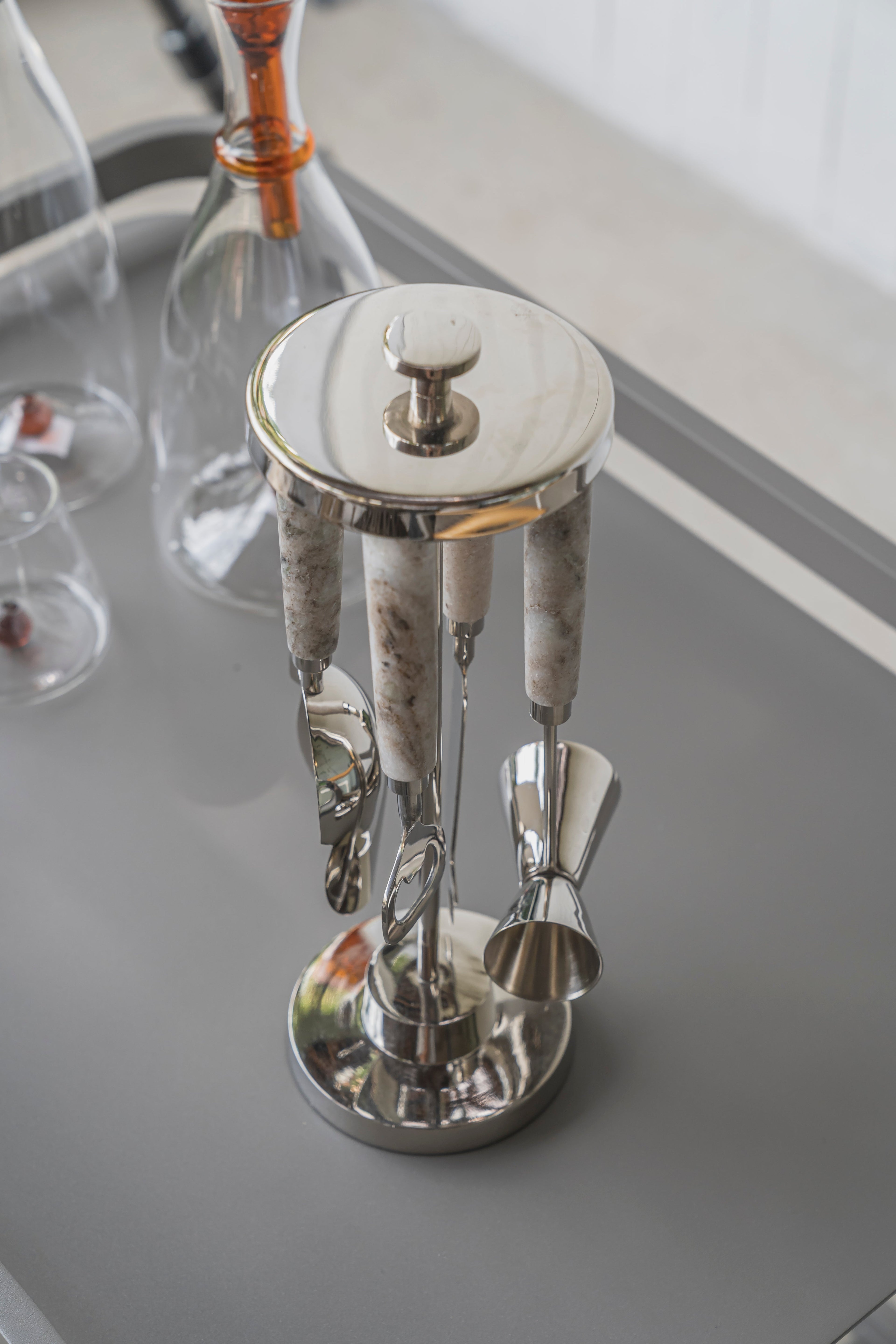 Set de herramientas de cocina plata con soporte