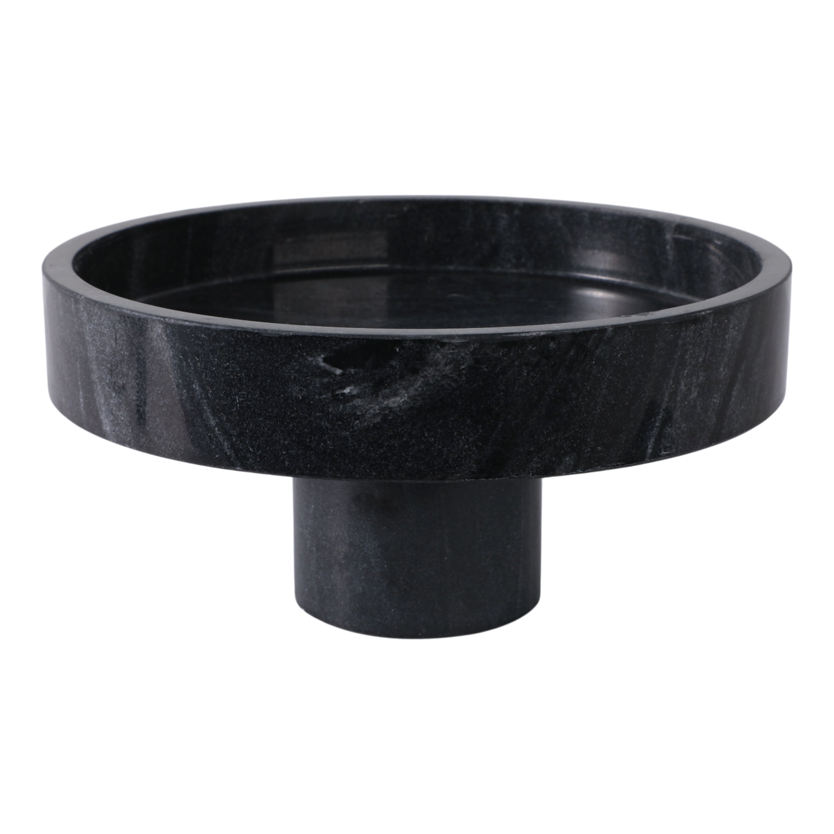 El bowl tiene un diseño circular con borde elevado y un pedestal cilíndrico que le da estabilidad y un estilo contemporáneo. Perfecto para servir alimentos o como pieza decorativa que realza ambientes minimalistas y refinados.