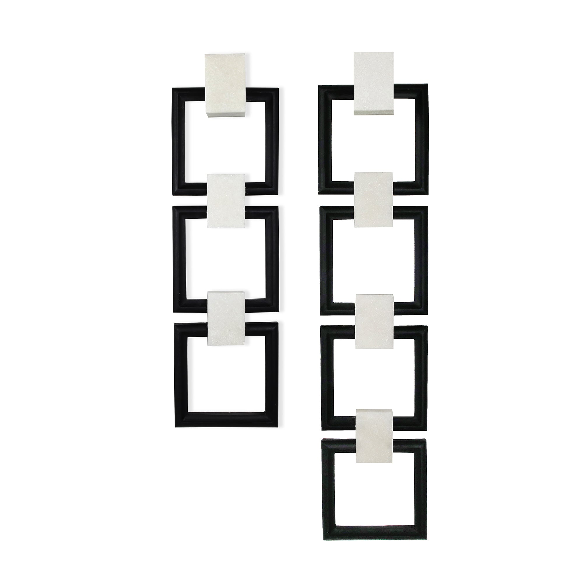Transforma tus espacios con elegancia y modernidad gracias a este set de cadenas decorativas para pared que combina un diseño lineal y contemporáneo. Cada cadena presenta cuadros con marcos en negro mate y elementos claros que crean un contraste visual sofisticado.