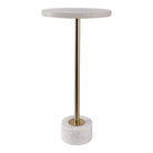 Agrega un toque de elegancia funcional a tus espacios con esta mesa auxiliar diseñada para adaptarse a ambientes reducidos. Su superficie circular de mármol blanco suave ofrece un acabado pulido que destaca y complementa cualquier decoración moderna o clásica.