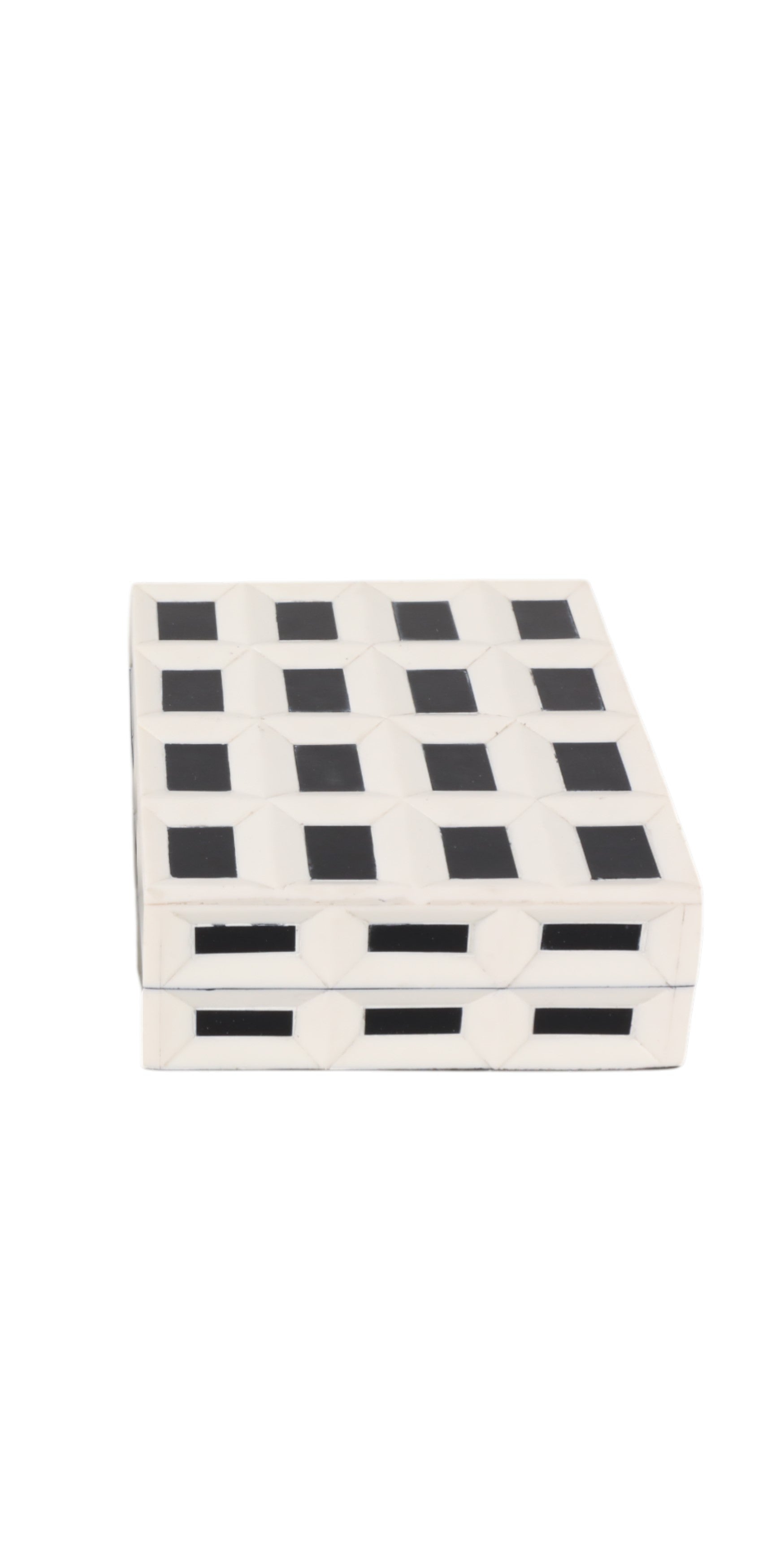 Organiza con estilo y funcionalidad gracias a este cofre pequeño decorativo con patrón cuadriculado en blanco y negro. Su diseño compacto y elegante te permite almacenar joyas, accesorios u objetos pequeños mientras añade un toque moderno a cualquier espacio.