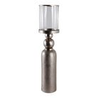 Candelabro metálico plateado con vidrio