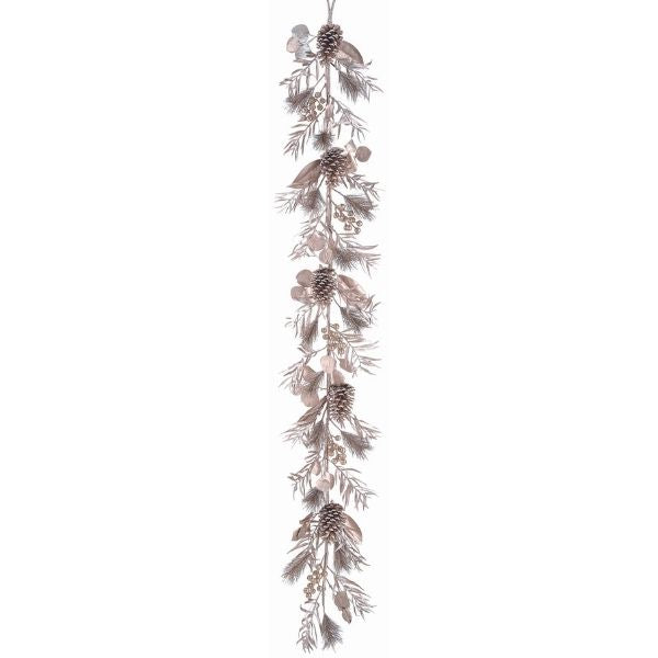Siente la calidez que aporta su acabado suave y los detalles que imitan piñas y hojas, aportando un estilo clásico y natural a tu decoración. Además, su base con estructura flexible facilita la colocación y el ajuste en donde más prefieras.