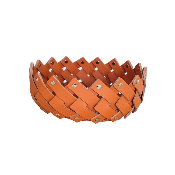 Canasta tejida mediana de cuero naranja para almacenamiento