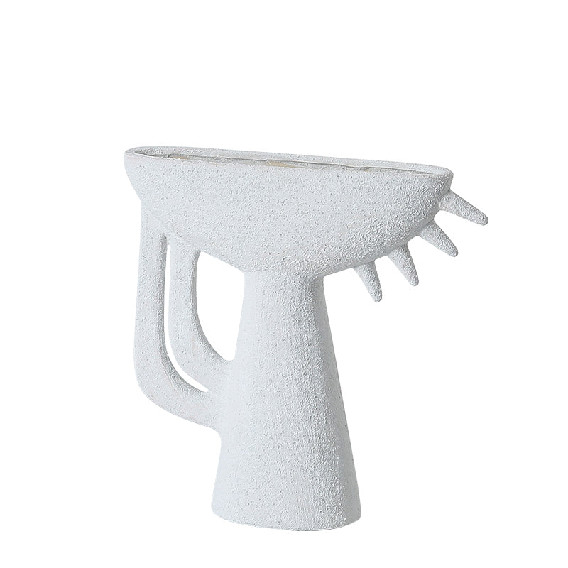 Transforma tu espacio con un toque de elegancia moderna. Este jarrón decorativo de cerámica blanca pura aporta un estilo minimalista que se adapta fácilmente a cualquier ambiente. Su forma abstracta y contemporánea crea un punto focal fascinante, ya sea que lo uses para exhibir flores o como pieza independiente.