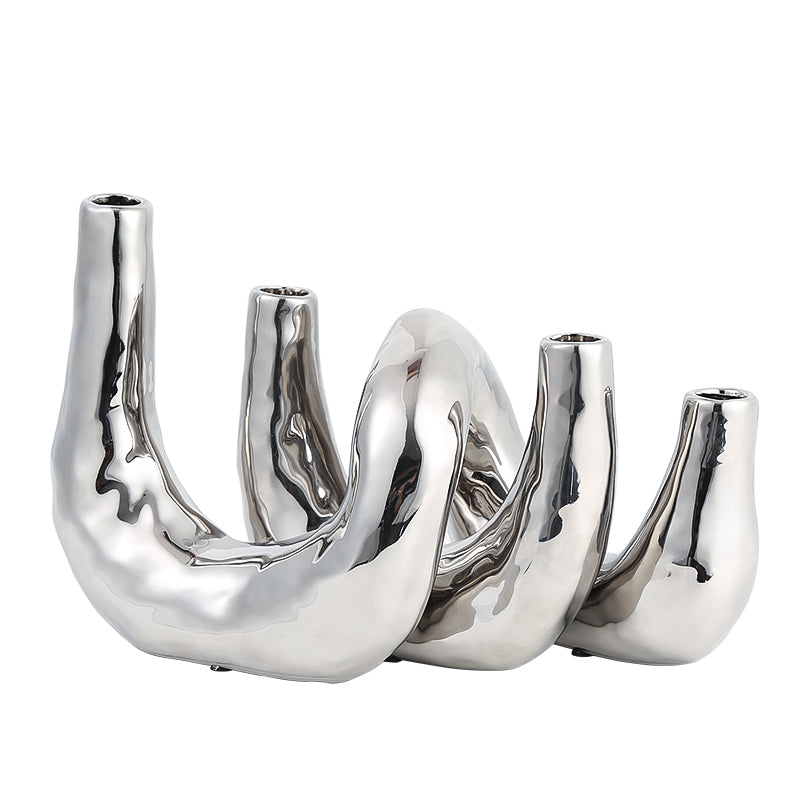 Añade un toque de elegancia contemporánea a tus espacios con este candelabro moderno plateado, diseñado para interiores. Su forma abstracta y orgánica crea una atmósfera sofisticada mientras sostiene tus velas favoritas con estilo.