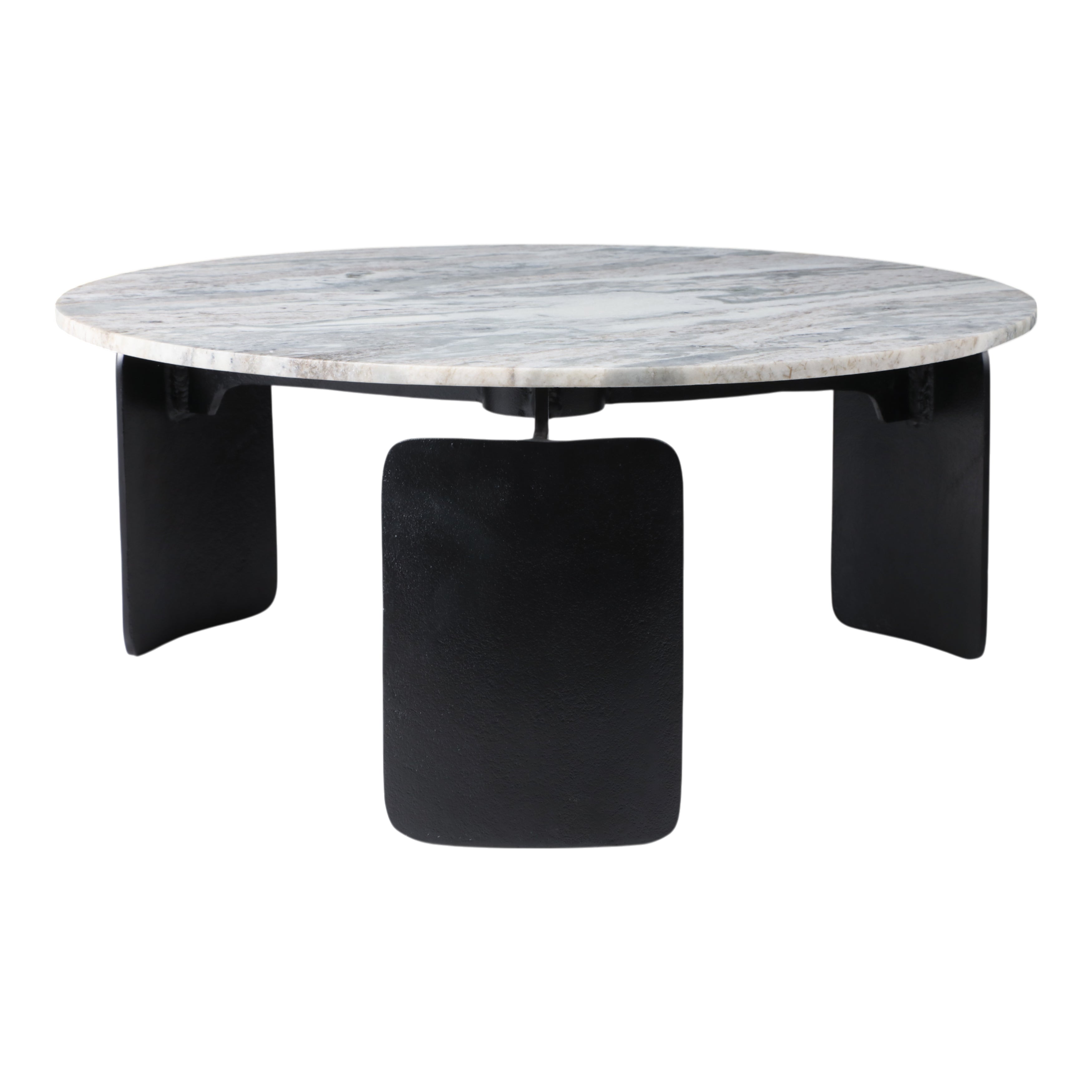 Mesa auxiliar circular de mármol blanco y base de metal negro mate