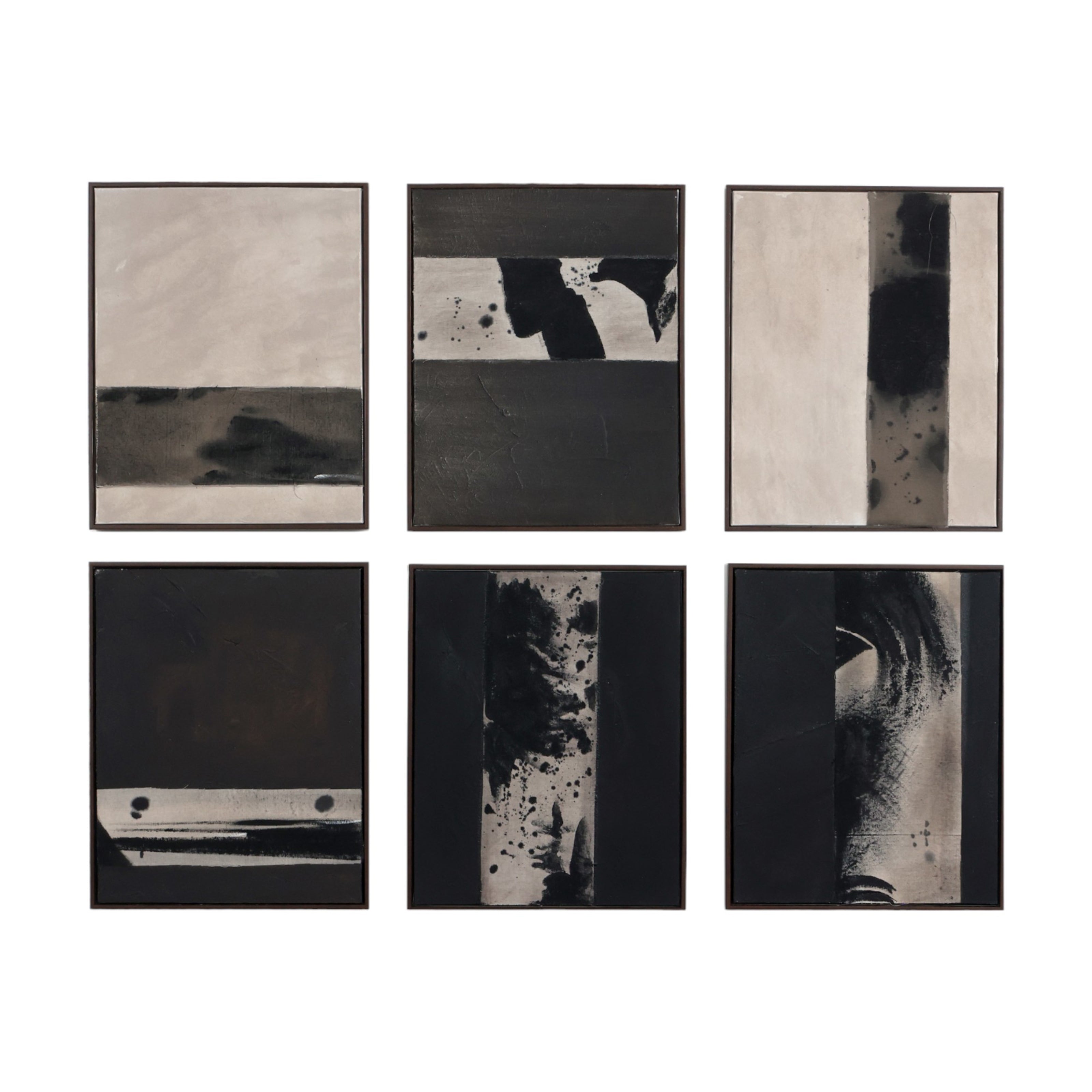 Set de 6 cuadros decorativos en lona poliéster negro y gris