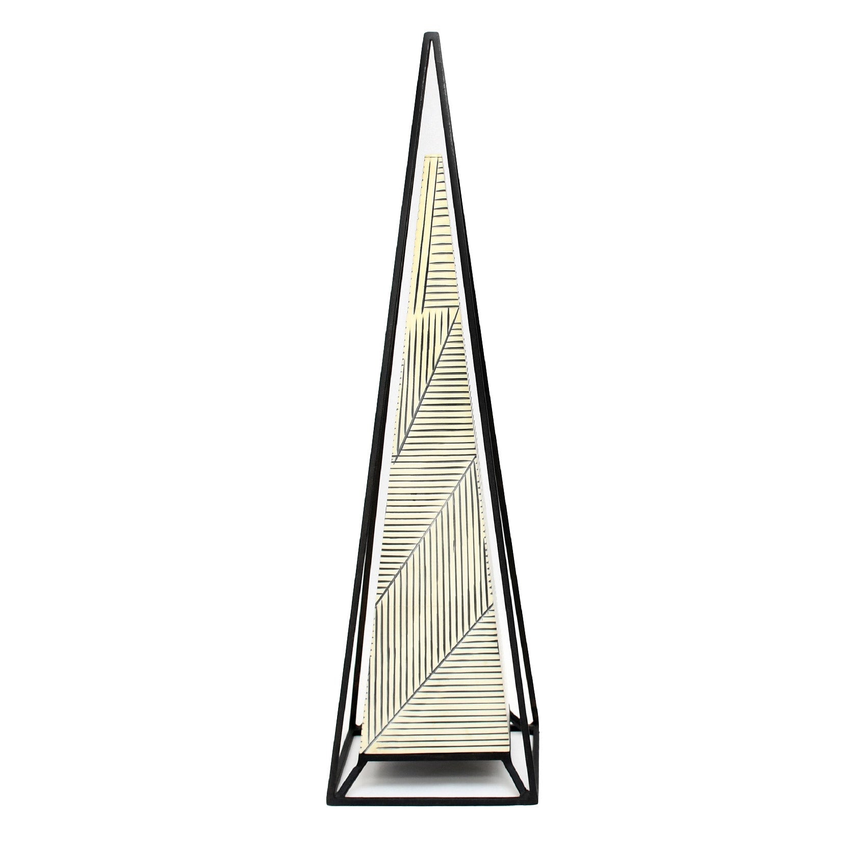 Realza tu espacio con un toque moderno y elegante. Esta pirámide decorativa grande combina un marco negro robusto con un interior claro para crear un contraste visual atractivo que capta todas las miradas. Ideal para añadir estilo y personalidad a cualquier mesa o estantería interior.