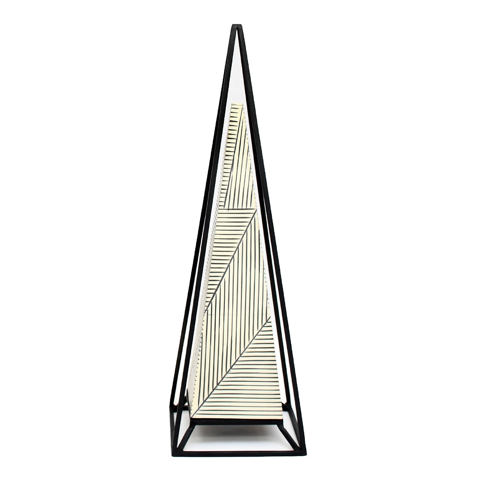 El contraste entre el marco negro y el interior claro realza cada ángulo de la pirámide, mientras las líneas diagonales en relieve aportan dinamismo y textura visual a tu decoración.