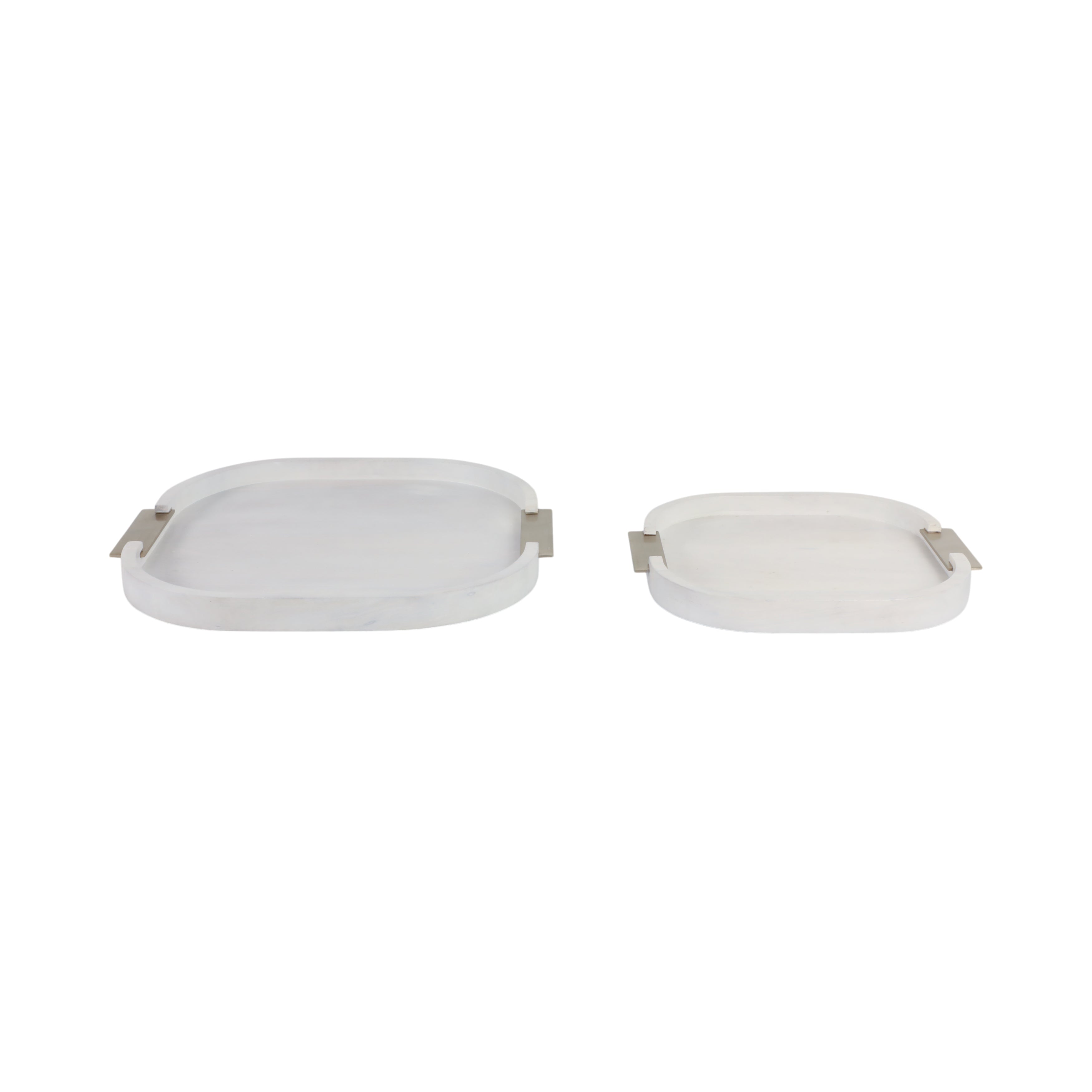 Bandeja grande de madera blanca con asas metálicas