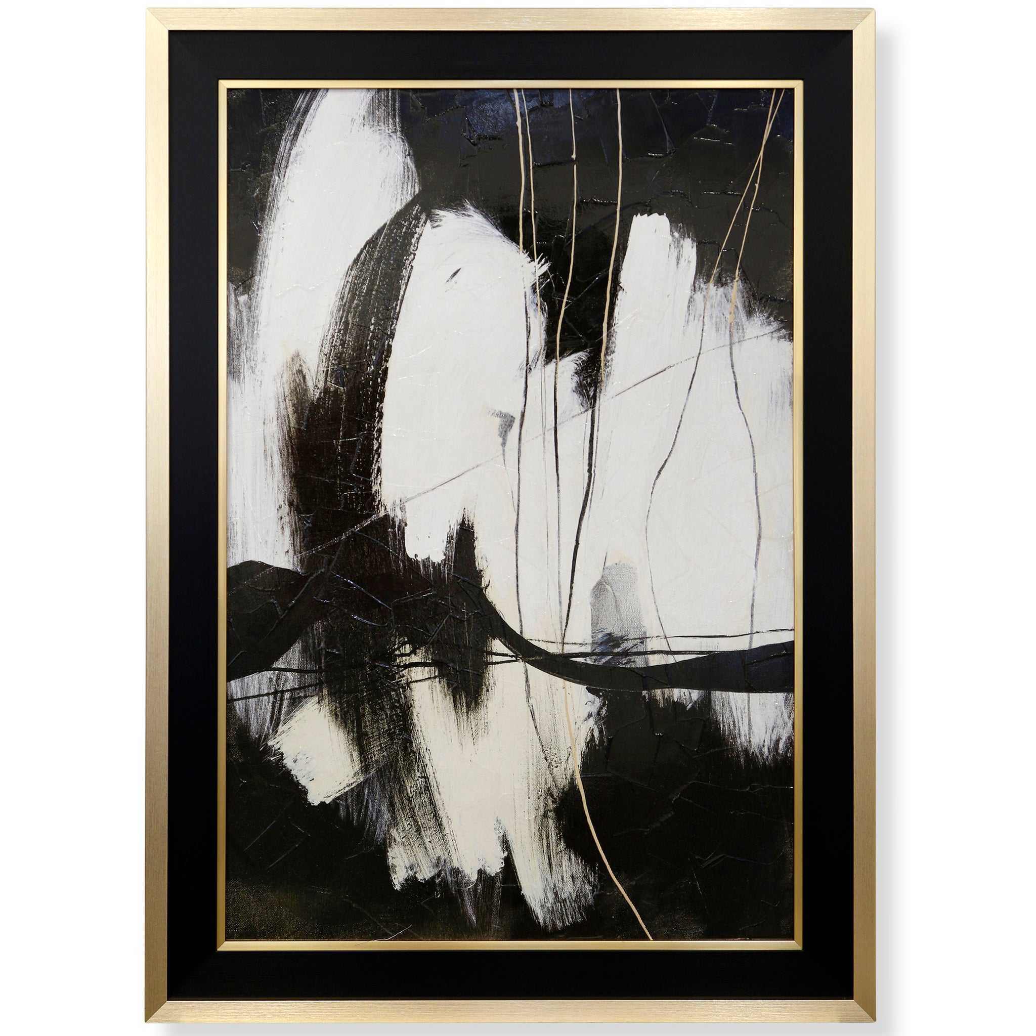 Cuadro abstracto blanco y negro en lienzo con marco MDF dorado