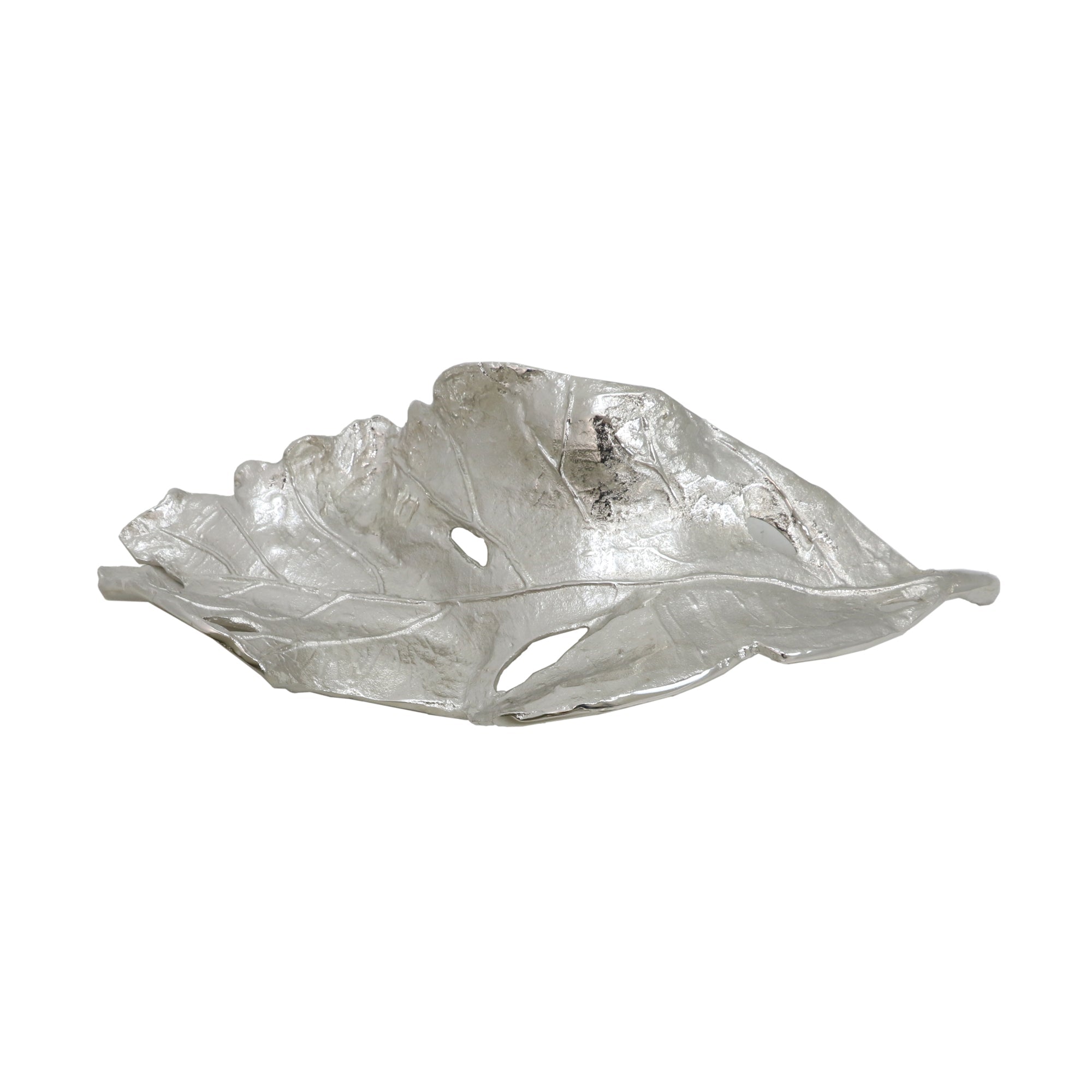Realza tu espacio con un toque natural y sofisticado gracias a nuestra bandeja decorativa pequeña con diseño en forma de hoja. Su acabado metálico plateado y brillante aporta elegancia y modernidad a cualquier mesa o estante, mientras que su forma orgánica invita a la calma y a la conexión con la naturaleza.