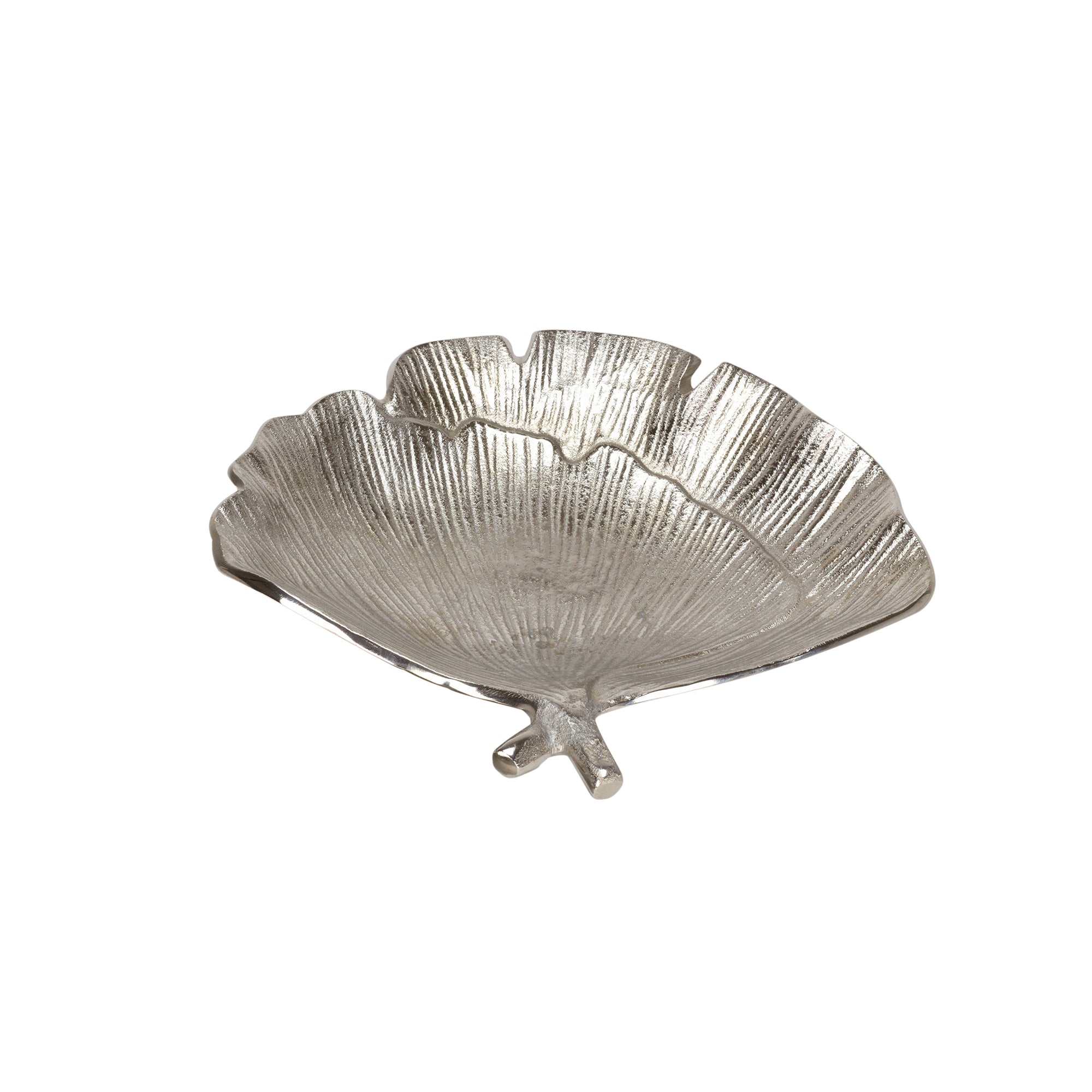 Eleva la decoración de tu espacio con esta bandeja grande de concha en metal plateado, perfecta para agregar un toque de elegancia y sofisticación a cualquier ambiente. Su diseño orgánico y brillante captura la luz de manera hermosa, creando reflejos que llaman la atención y realzan tus objetos favoritos.