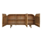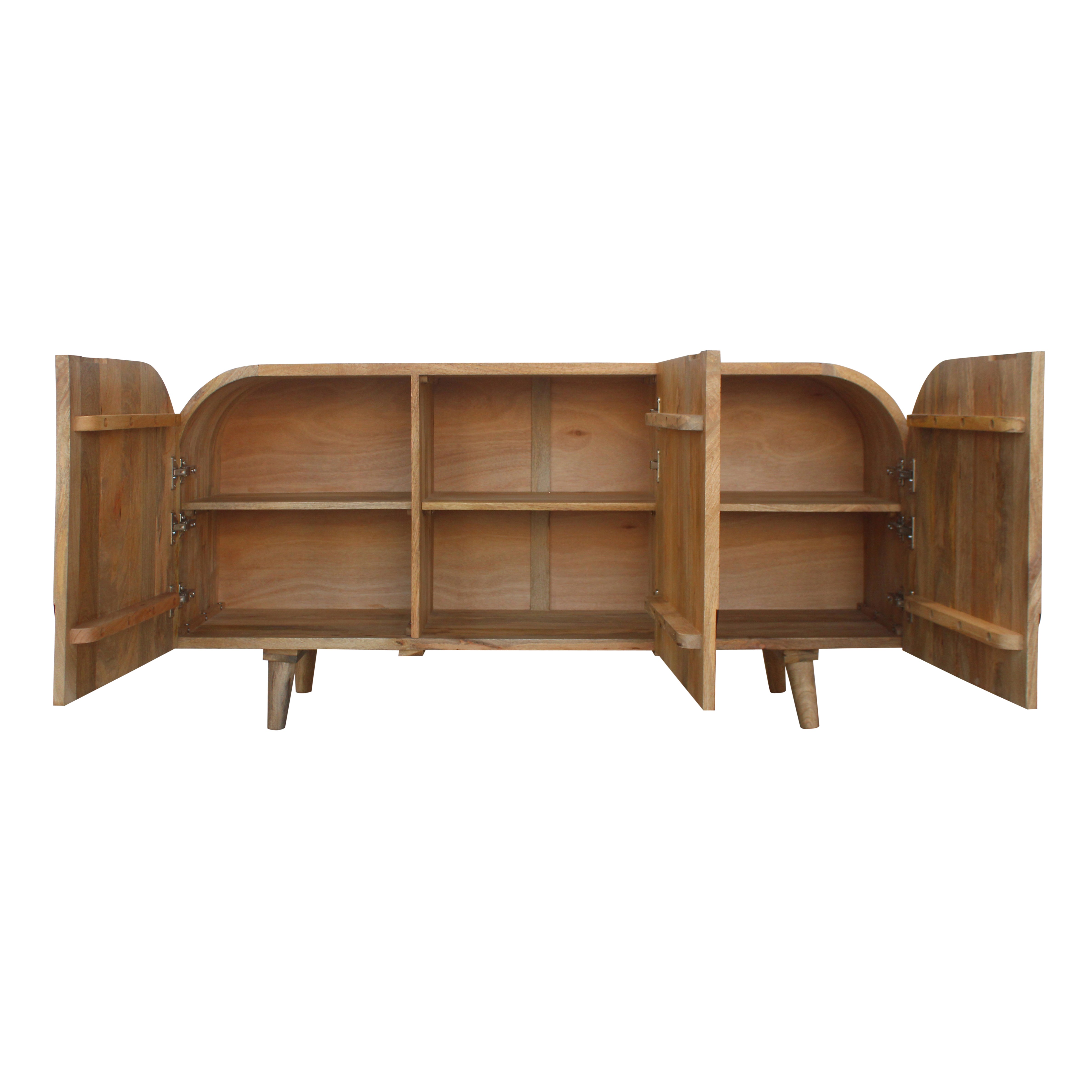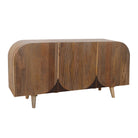 Cajonera de madera con patas y diseño ondulado en marrón cálido