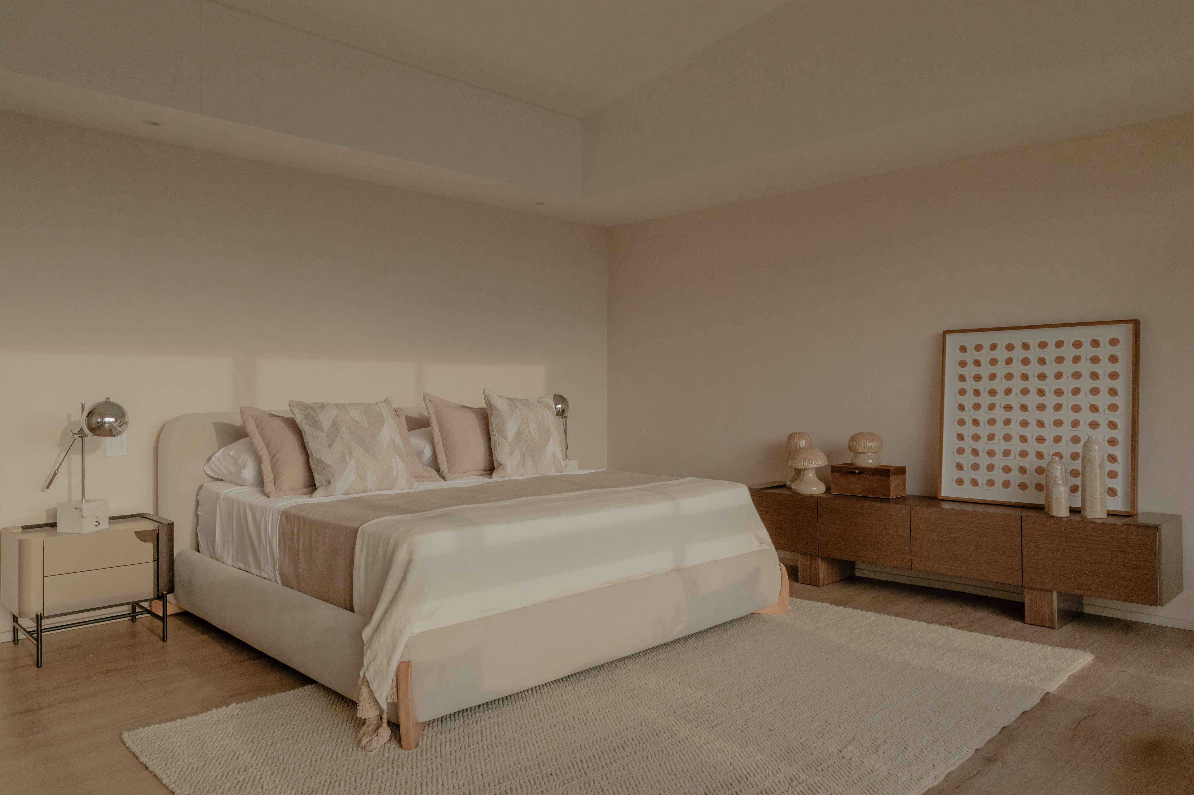 Descansa con estilo y comodidad gracias a la Cama Lunaria, diseñada para ofrecerte un espacio amplio y acogedor donde el descanso es prioridad. Su cabecero alto y acolchado aporta soporte adicional, mientras que su base robusta garantiza estabilidad durante la noche.