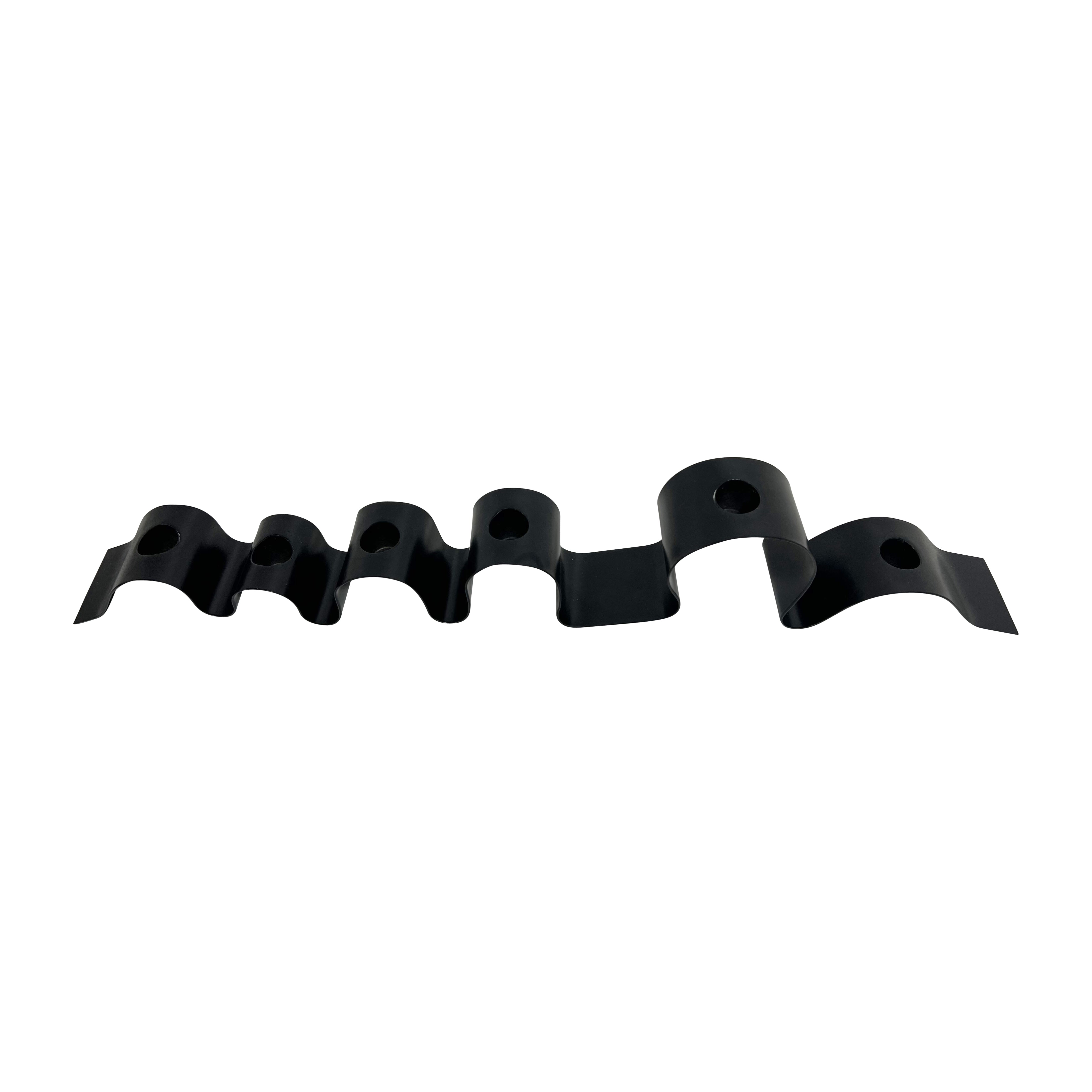 Crea un ambiente cálido y sofisticado con este candelabro negro de metal, diseñado para quienes buscan combinar funcionalidad y elegancia en su decoración. Su forma ondulada y contemporánea aporta un toque dinámico y estilizado a cualquier espacio, ideal para mesas o estanterías sin ocupar mucho lugar.