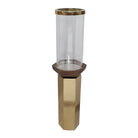 Crea un ambiente cálido y elegante con nuestro farol decorativo alto, perfecto para iluminar tus espacios interiores y exteriores con una luz suave y acogedora. Su diseño elegante combina una base de metal dorado con un acabado martillado y un cilindro de vidrio transparente que realza cualquier decoración.