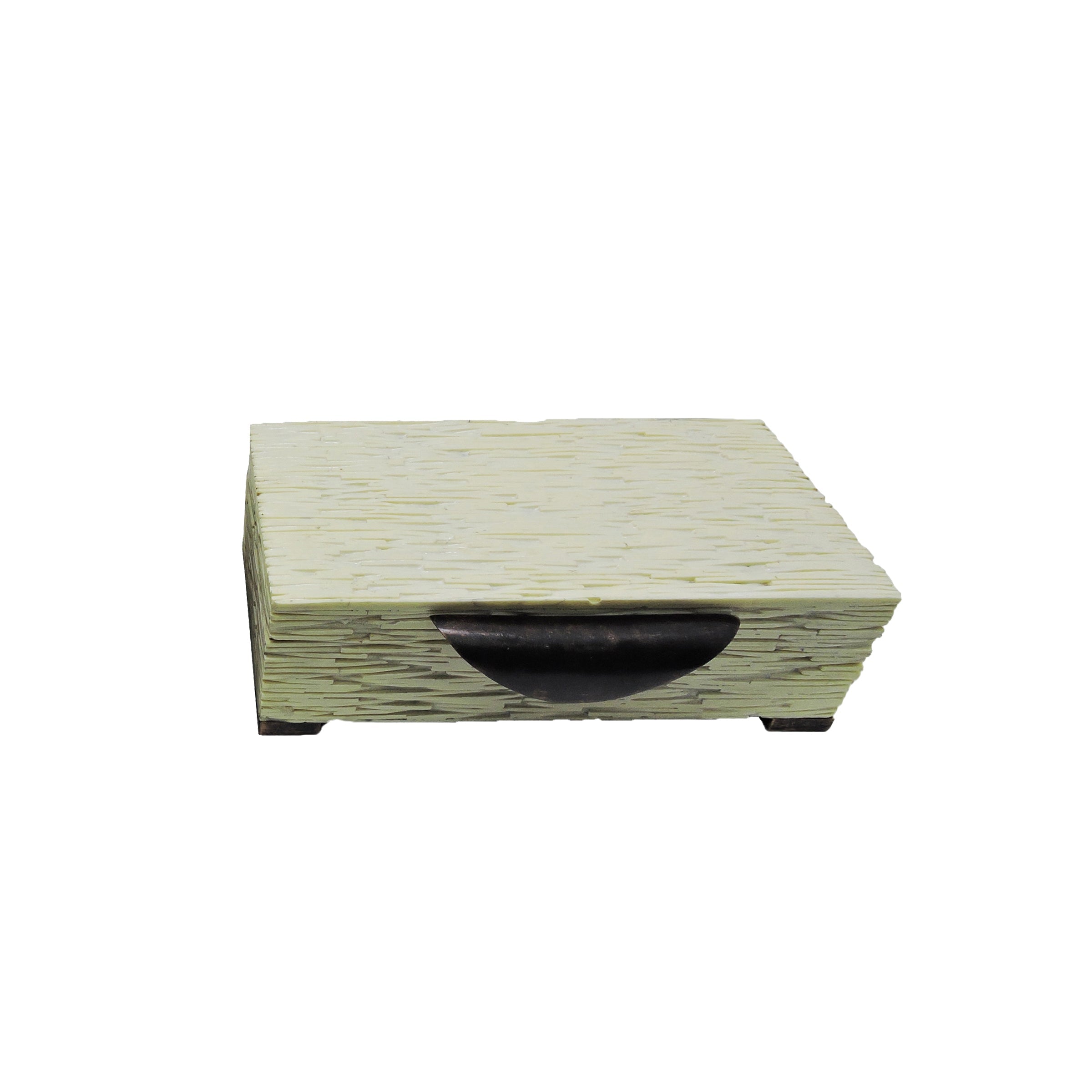 Cofre pequeño rústico de MDF blanco crema con manija negra