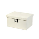 Cofre tejido blanco pequeño de madera con detalles de cuero
