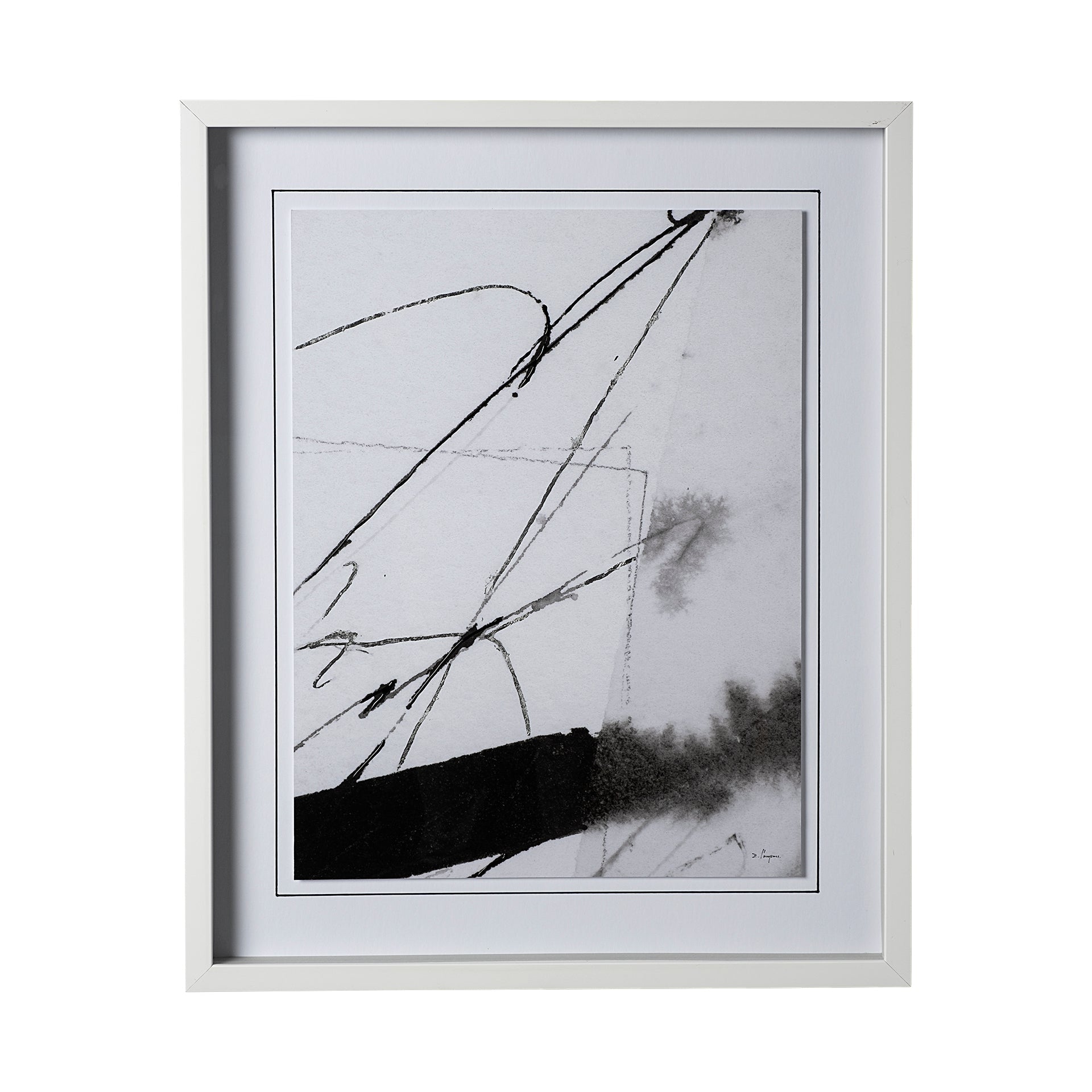 Con una forma rectangular clásica y un marco delgado de plástico blanco, este cuadro destaca gracias a su obra abstracta en trazos fluidos y manchas negras, protegida por una lámina de vidrio para una mayor durabilidad. Es fácil de colgar, integrándose perfectamente en diferentes estilos de decoración.