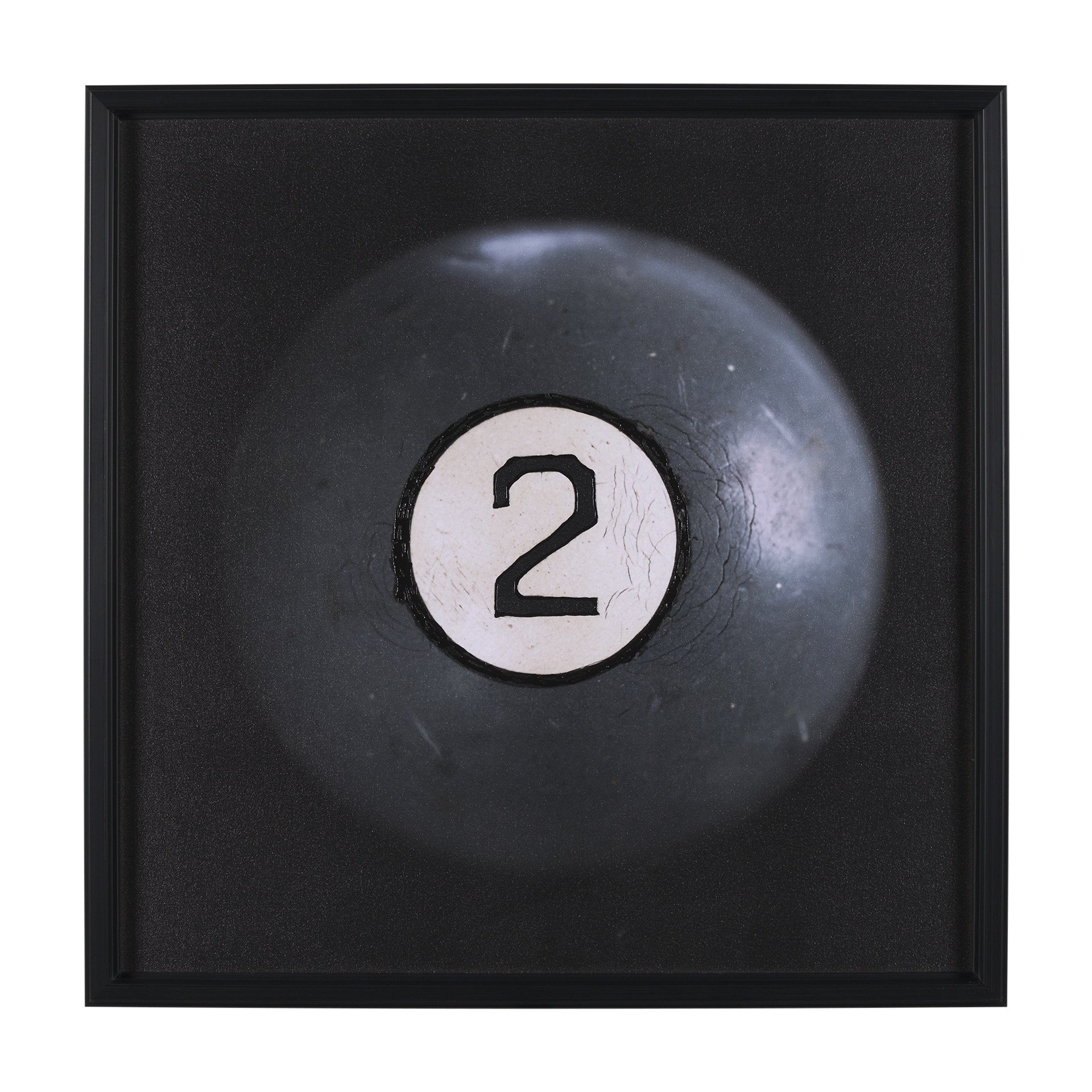 - Diseño moderno con una bola de billar número 2 en tonos grises y negros, ideal para salones, estudios o salas de juegos.