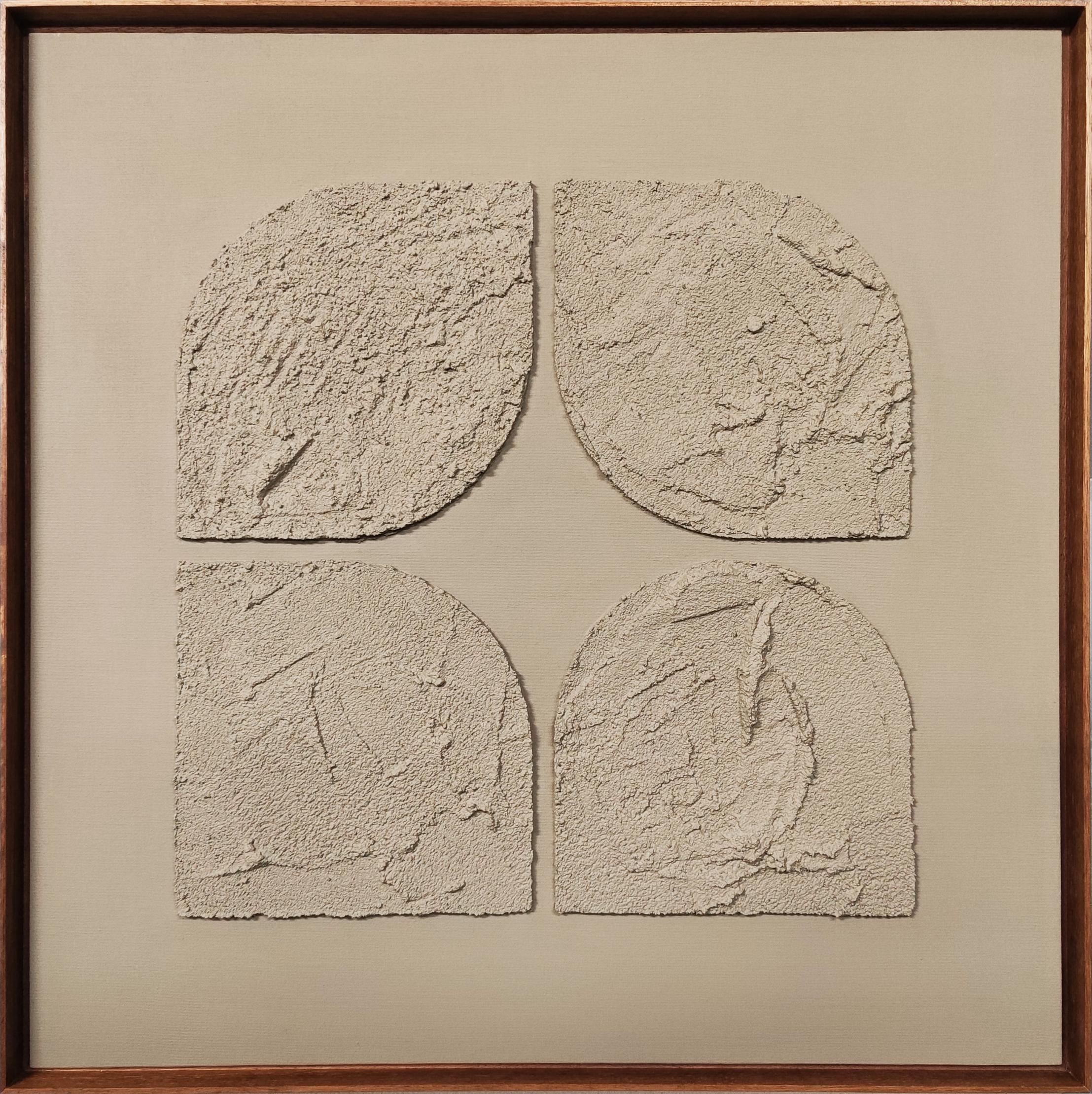 Este cuadro rectangular presenta un diseño único con cuatro formas semi-ovaladas en relieve que generan profundidad y un interés visual especial. Ideal para colgar en la pared y convertirse en el punto focal de tu habitación sin dominar el espacio.