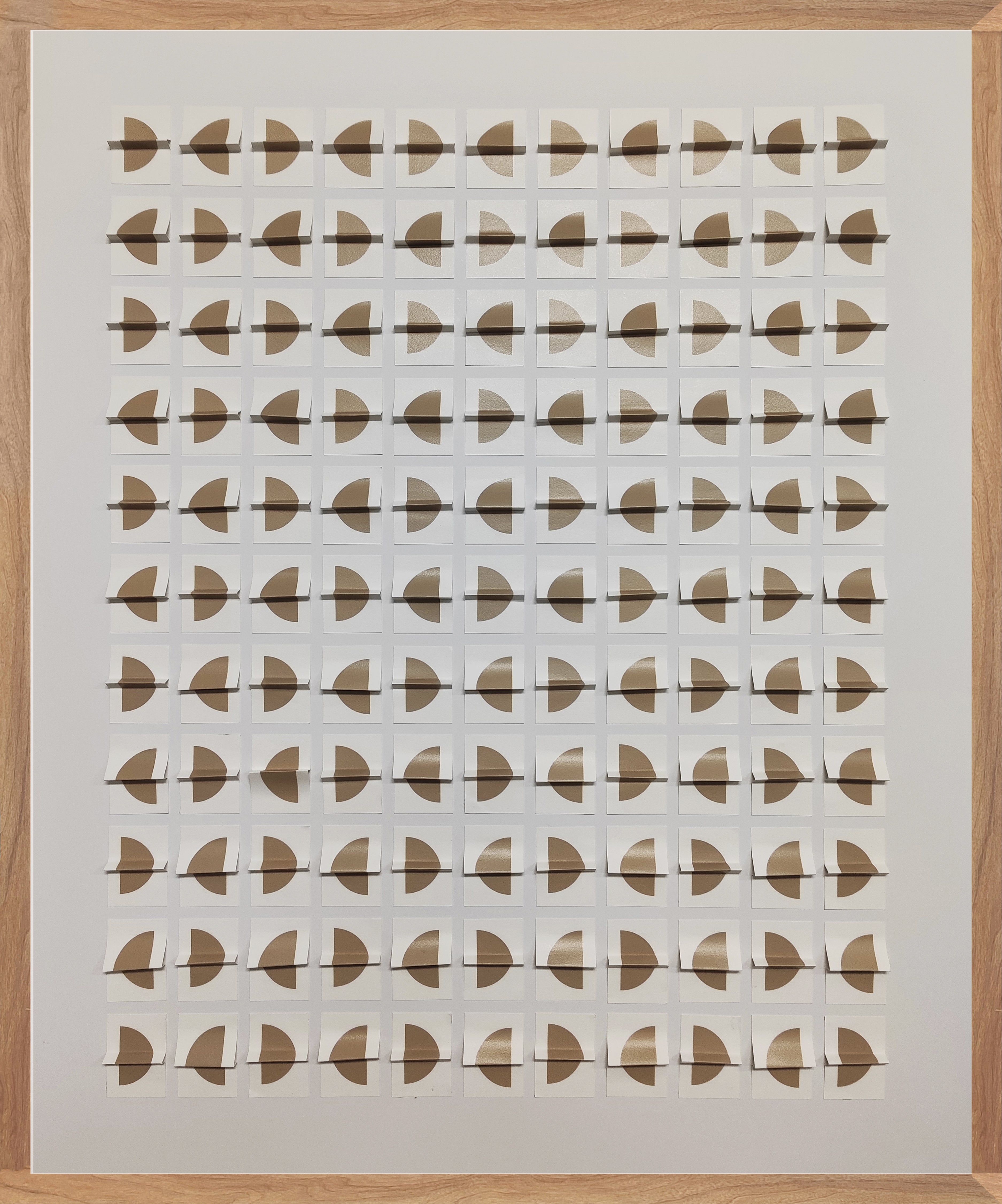 Agrega un toque elegante a tu espacio con este cuadro decorativo en tonos blanco, crema y dorado, diseñado para convertirse en el centro de atención de cualquier habitación. La combinación de sus formas geométricas en paneles pequeños aporta profundidad y sofisticación visual a tus paredes.