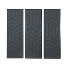 Fabricado con espuma de poliestireno y yeso, ofrece una textura suave al tacto y una estructura ligera que facilita su instalación y manejo. Cada panel rectangular y alargado destaca por sus patrones en relieve, generando un efecto visual de profundidad y movimiento.