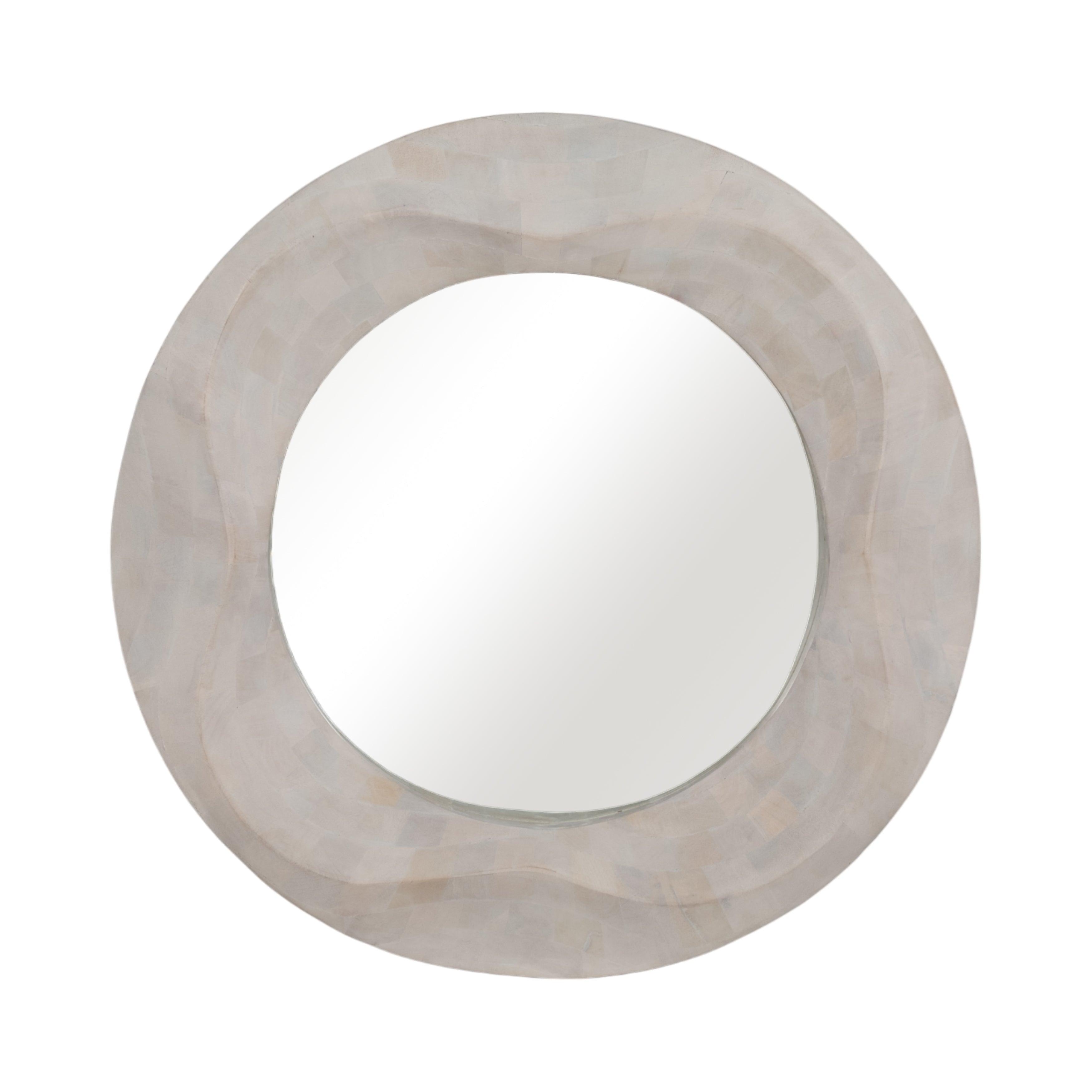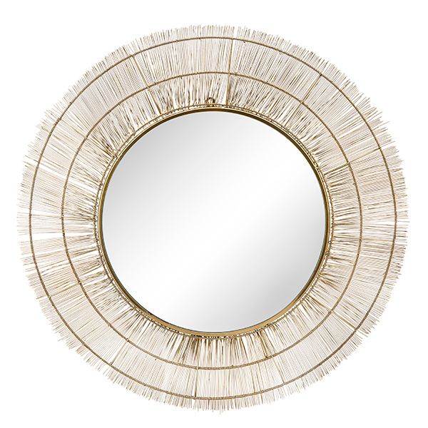 Espejo circular con marco metálico de alambre, diseño geométrico