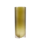 Jarrón cilíndrico de resina transparente amarillo-oliva para decoración