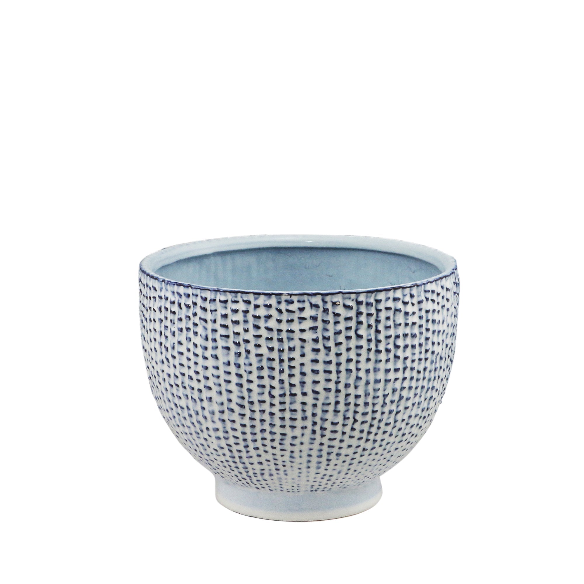 Agrega un toque de frescura y estilo a tus espacios con este plantador pequeño de cerámica azul texturizado. Perfecto para interiores o exteriores, realza la belleza de tus plantas mientras aporta un aire moderno y atractivo a cualquier ambiente.