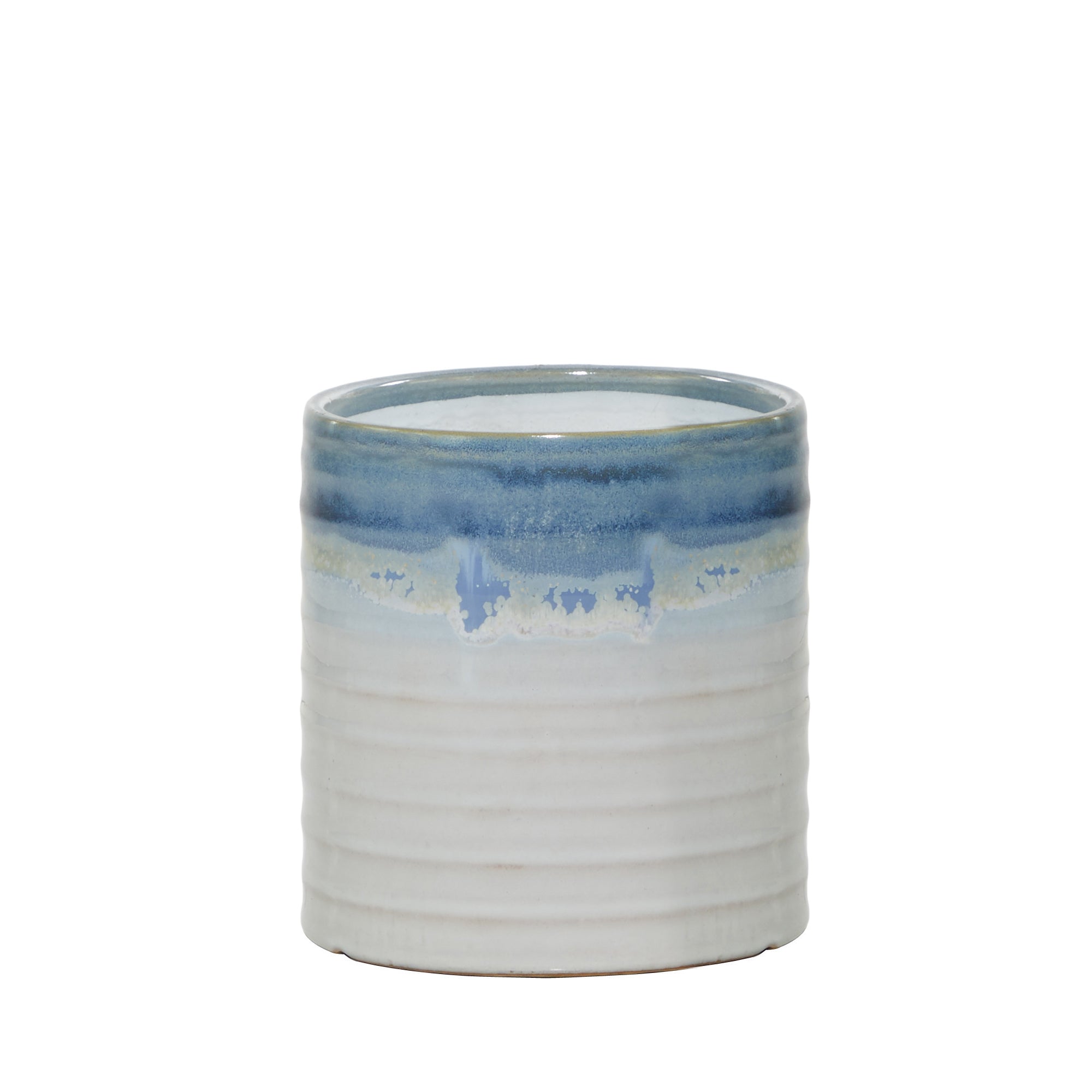 Transforma tu espacio con este plantador cerámico mediano que combina estilo y funcionalidad. Su elegante degradado en tonos blancos y azules aporta frescura y serenidad a cualquier ambiente, ideal para realzar tus plantas favoritas en interiores o balcones.