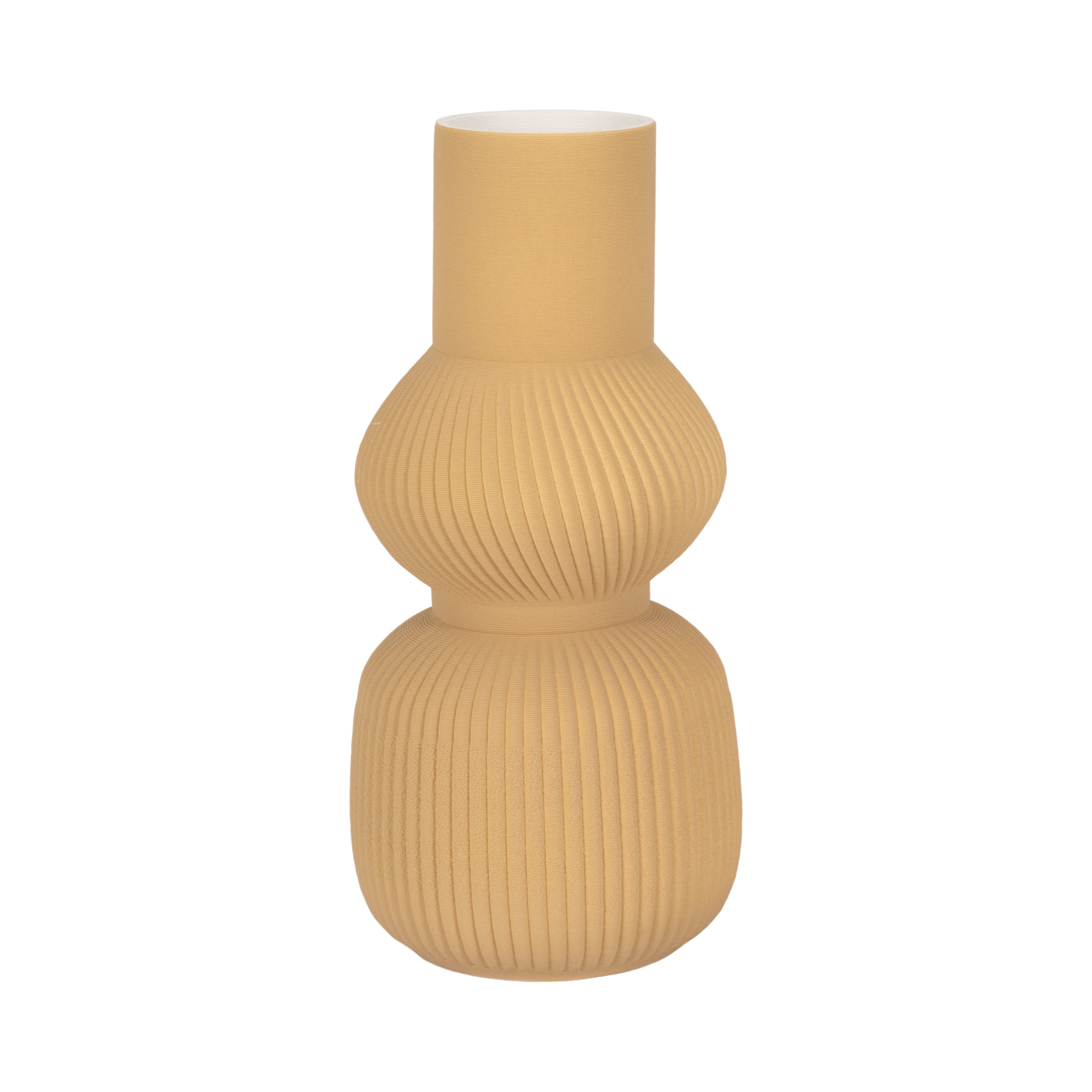 Destaca la elegancia natural en tu espacio con este jarrón decorativo estriado en un suave color café claro. Su diseño 3D combina una base esférica con una abertura cilíndrica que realza la exhibición de tus flores o funciona como un elemento artístico individual.