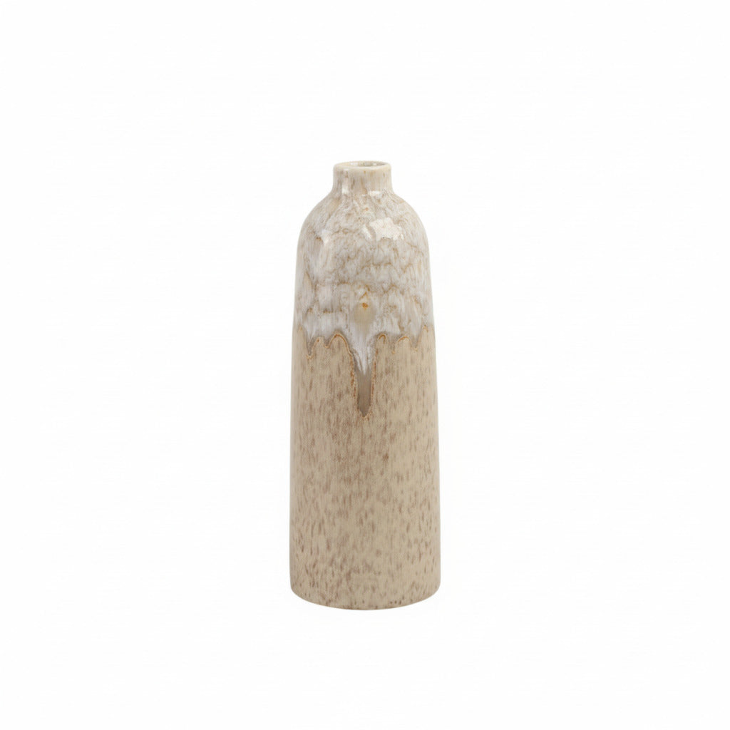 Agrega un toque de elegancia suave a tus espacios con esta botella mediana en tonos beige claros con detalles blancos que aportan frescura y estilo neutral a cualquier ambiente. Diseñada para exhibir flores o funcionar como un accesorio decorativo, se integra a la perfección en estanterías, mesas o consolas sin abrumar.