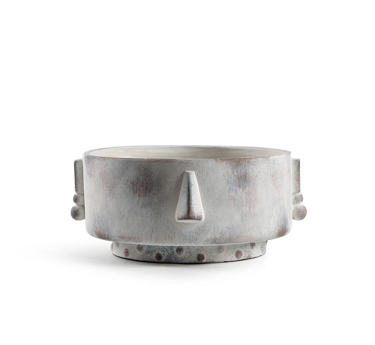 Su diseño cilíndrico robusto y textura mate con un acabado que simula un rostro único, invita a que cada rincón de tu casa cobre vida y personalidad. Además, su base elevada garantiza una estabilidad segura sobre mesas o estantes.