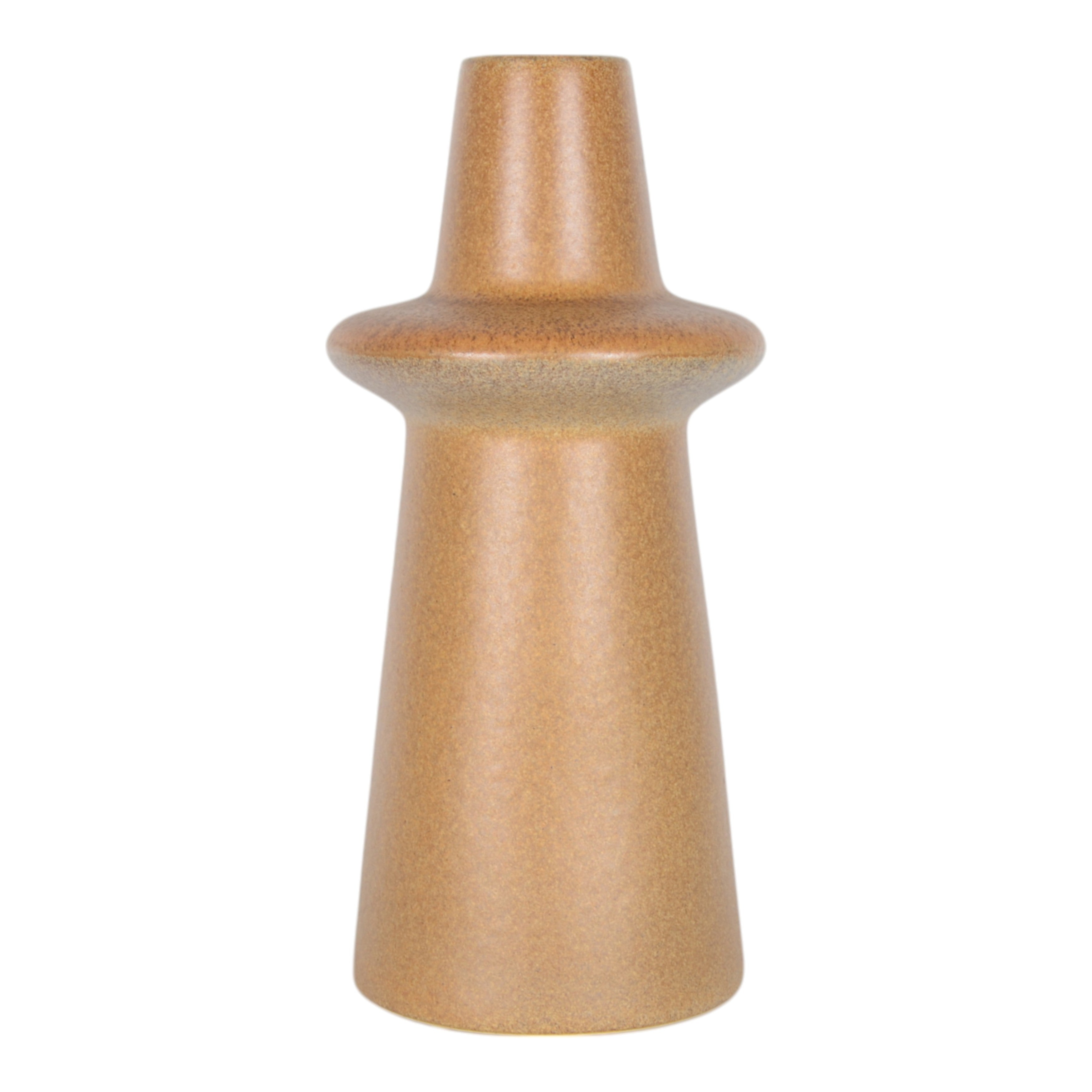 Embellece tus espacios con este jarrón decorativo de cerámica en un encantador marrón brillante. Su forma cónica y tamaño medio lo hacen perfecto para destacar flores frescas o simplemente como un detalle elegante en tu hogar u oficina.