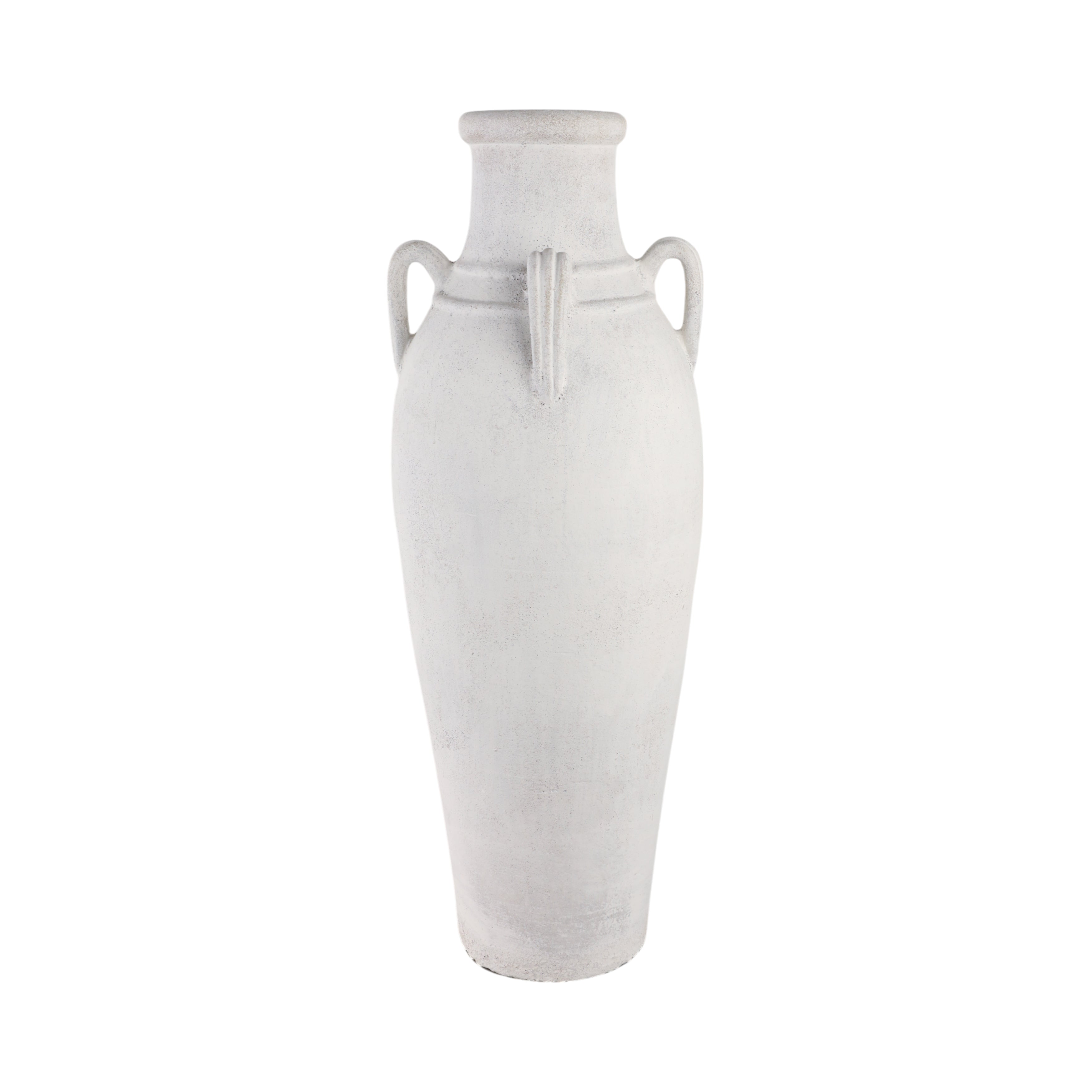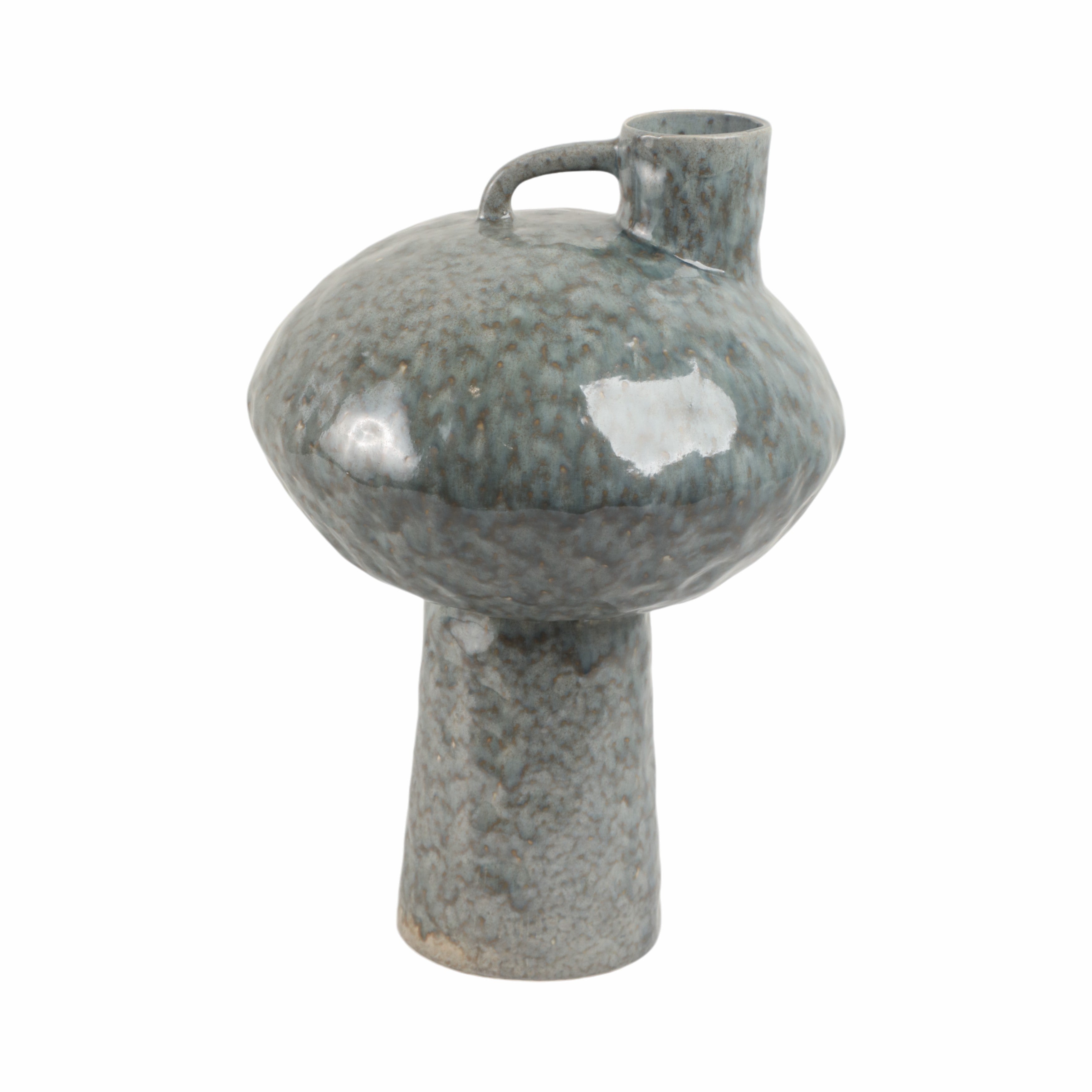 Jarrón de cerámica esmaltada gris claro con asa lateral