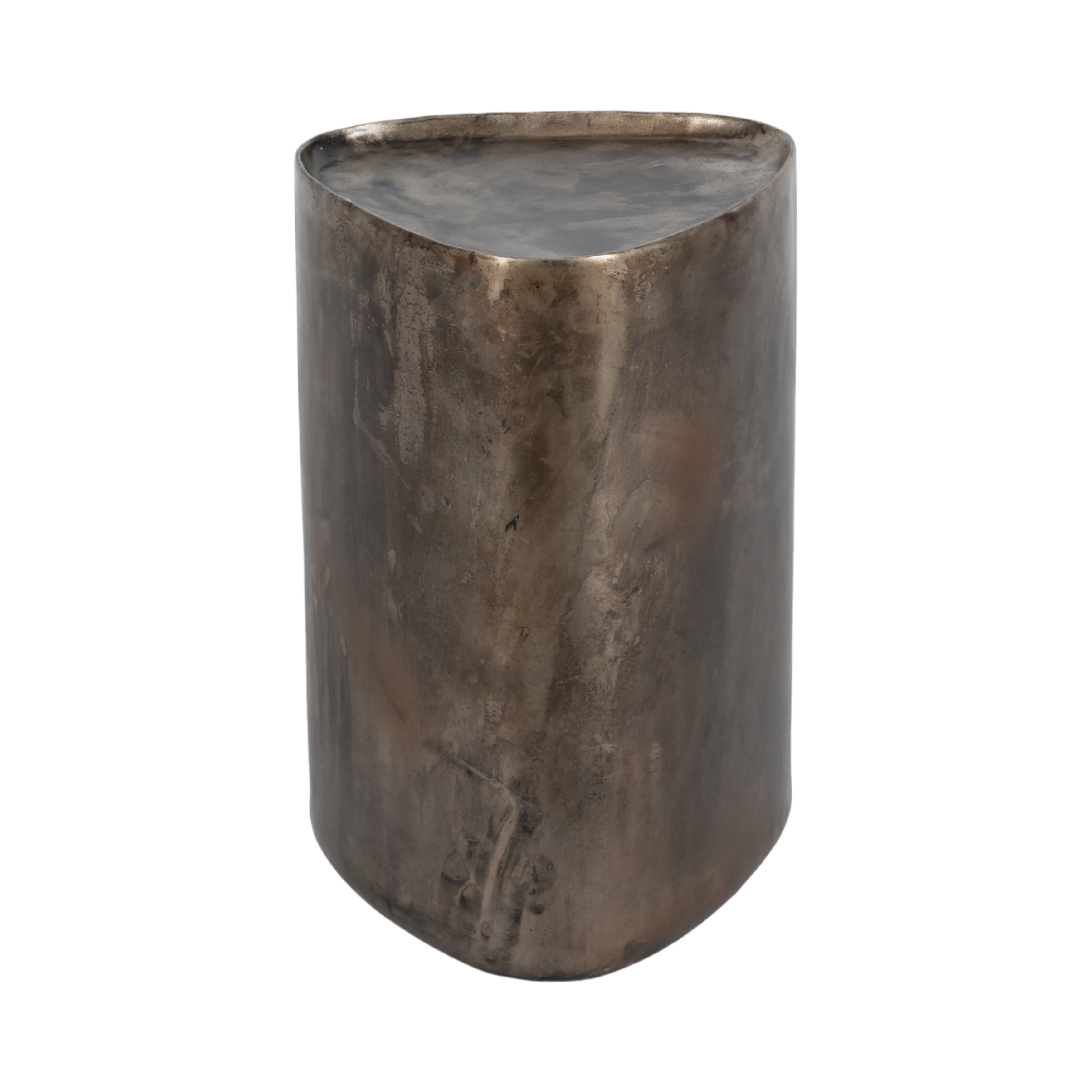 Su superficie pulida y brillante refleja la luz con elegancia, mientras que su tamaño compacto facilita su movilidad y uso junto a sofás o sillas. Esta mesa une una apariencia industrial con detalles refinados, creando un ambiente acogedor y actualizado en tu hogar.