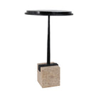 Mesa auxiliar de vidrio y travertino con soporte metálico