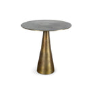 Agrega un toque de elegancia moderna a tus espacios con esta mesa auxiliar metálica, diseñada para ofrecerte una superficie extra práctica y estilizada en tu sala o rincón favorito. Su diseño cónico combina una base dorada sofisticada con una tapa metálica oscura que crea un contraste visual atractivo y contemporáneo.