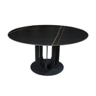 La superficie de piedra negra con vetas doradas ofrece una textura suave y un acabado exclusivo, mientras que la robusta base de hierro negro garantiza durabilidad y resistencia. Disfruta de un espacio amplio y funcional que invita a la convivencia excepcional.