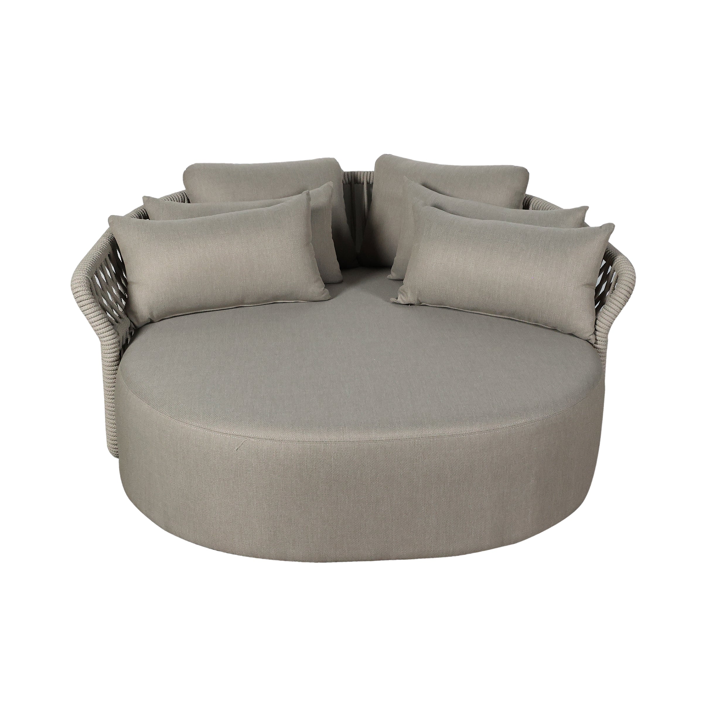 Disfruta de momentos inolvidables al aire libre con nuestro sofá exterior redondo en gris claro, pensado para crear un espacio cómodo y estilizado en tu jardín. Su diseño envolvente y moderno te invita a relajarte y compartir en compañía, aportando confort y elegancia a tus espacios exteriores.