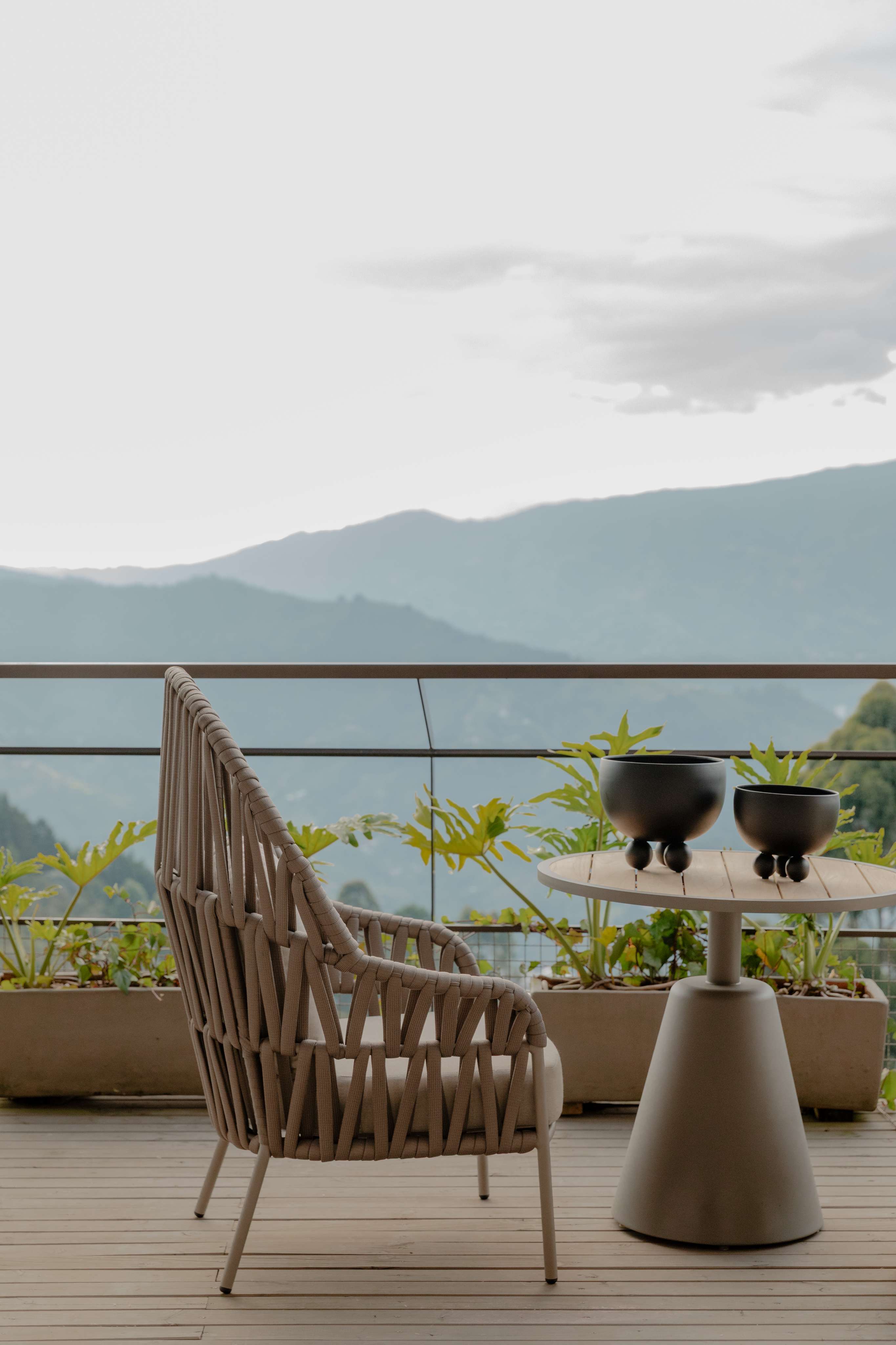 Silla exterior beige cómoda para terraza