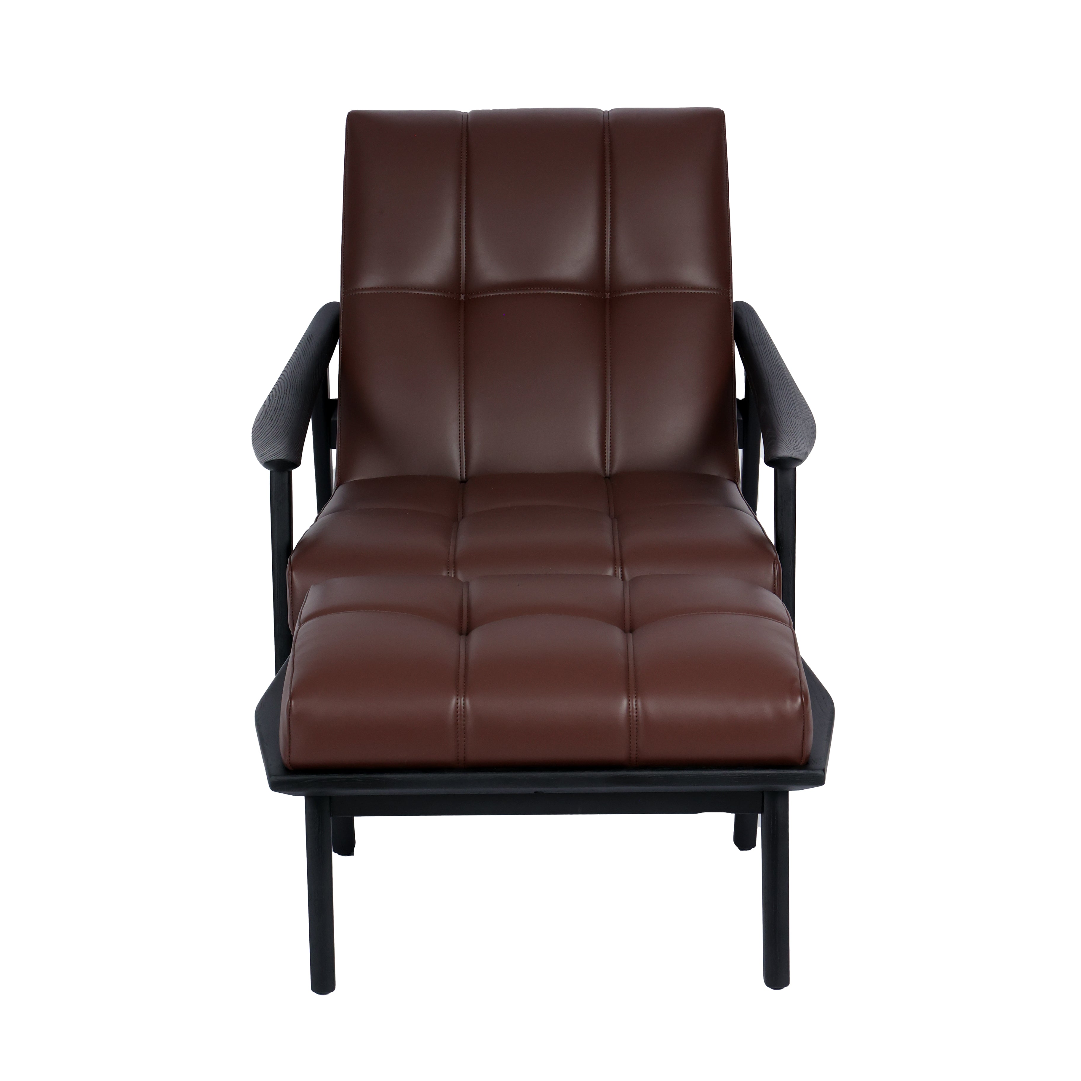 El diseño moderno combina un marco robusto negro con el asiento marrón de policuero, que añade un toque elegante y fácil de mantener. Las costuras cuadradas aportan textura y estilo, haciendo que cada momento de descanso sea también una experiencia visual agradable.